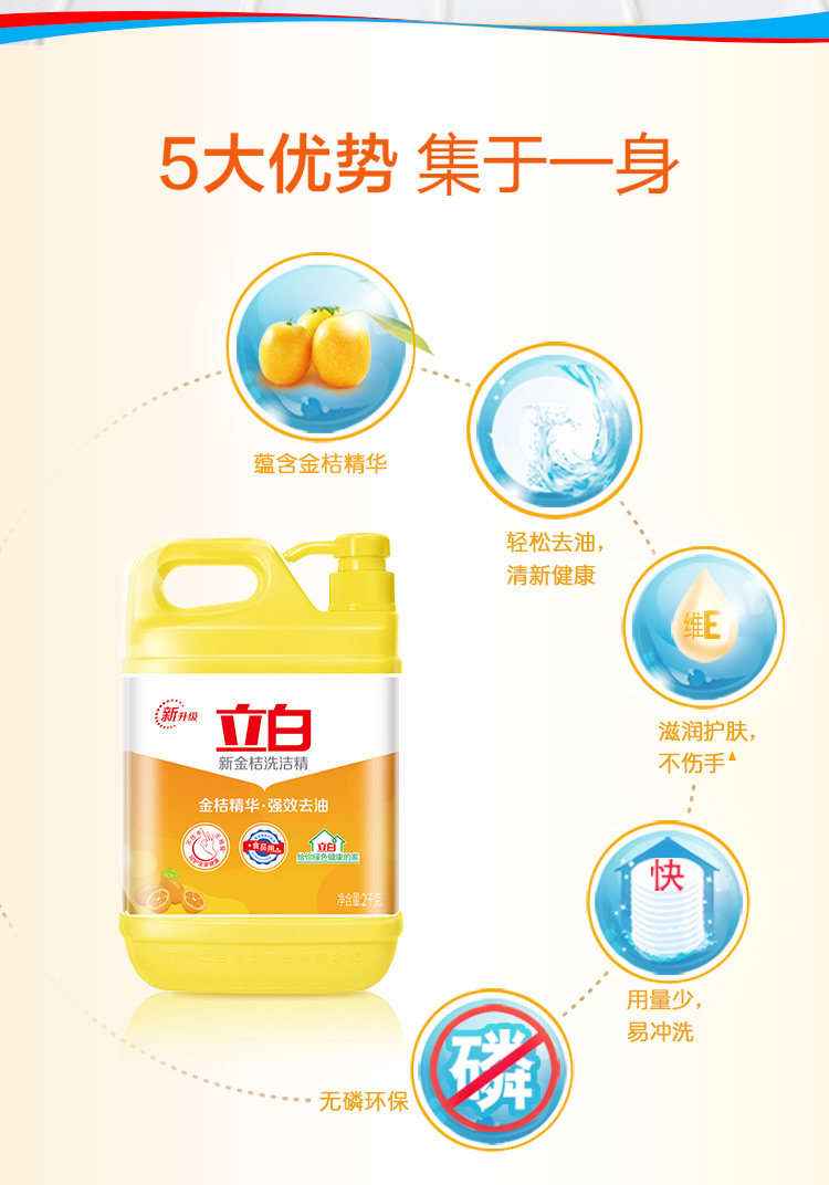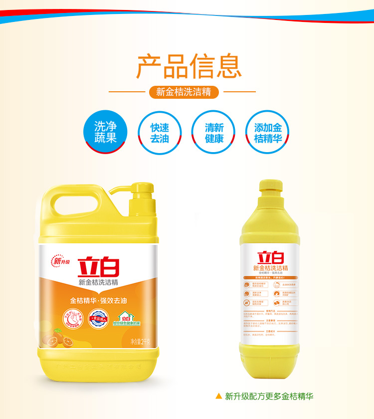 - 商品名称:立白 新金桔洗洁精2kg/瓶 金桔精华 轻松去油