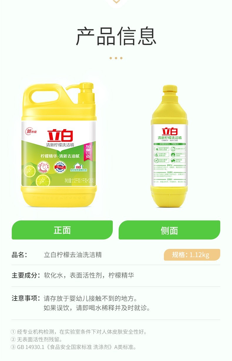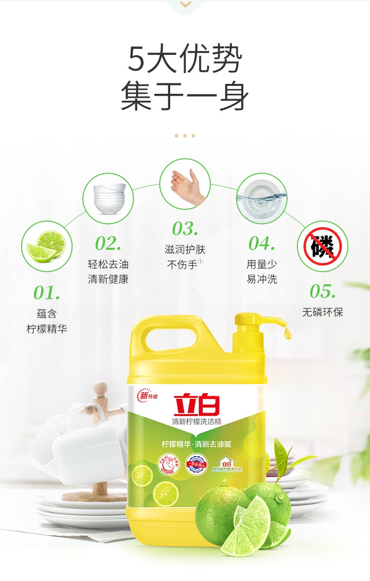 - 商品名称:立白柠檬洗洁精金桔洗涤灵洗涤剂大桶洗碗液果蔬清洗剂水果清洗厨房餐具不伤手食品级 【6.72斤柠檬】