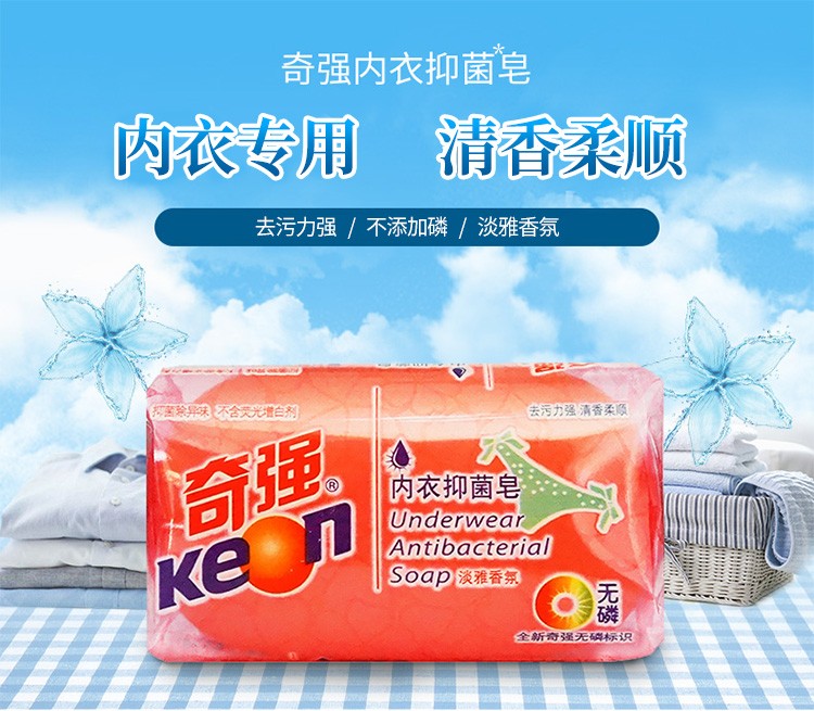 - 商品名称:奇强内衣皂内衣裤专用洗衣皂去异味柔顺透明皂肥皂100g*4块组合装