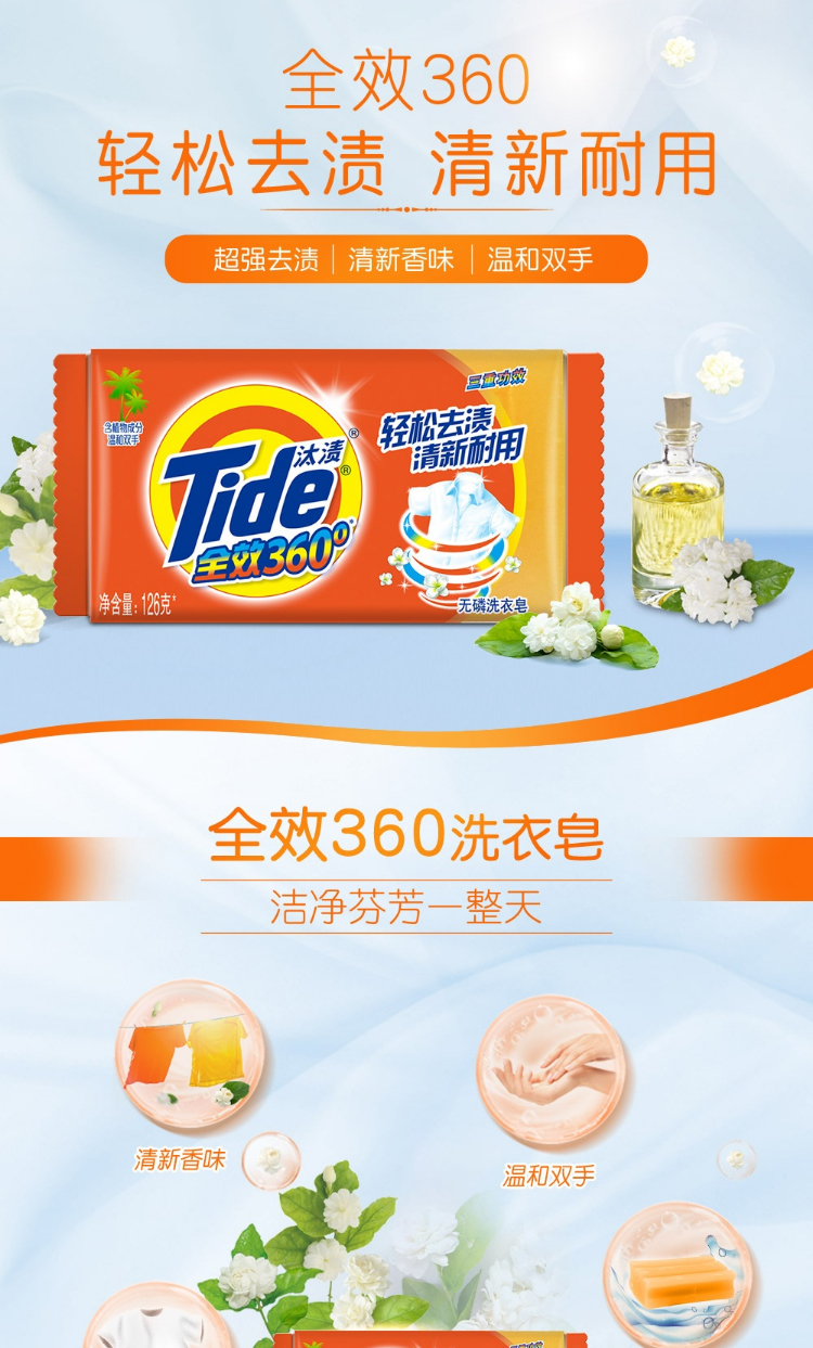 - 商品名称:汰渍 Tide 全效洁净洗衣皂 126G*10 超值10块装 透明皂 肥皂 手洗 温和不伤手