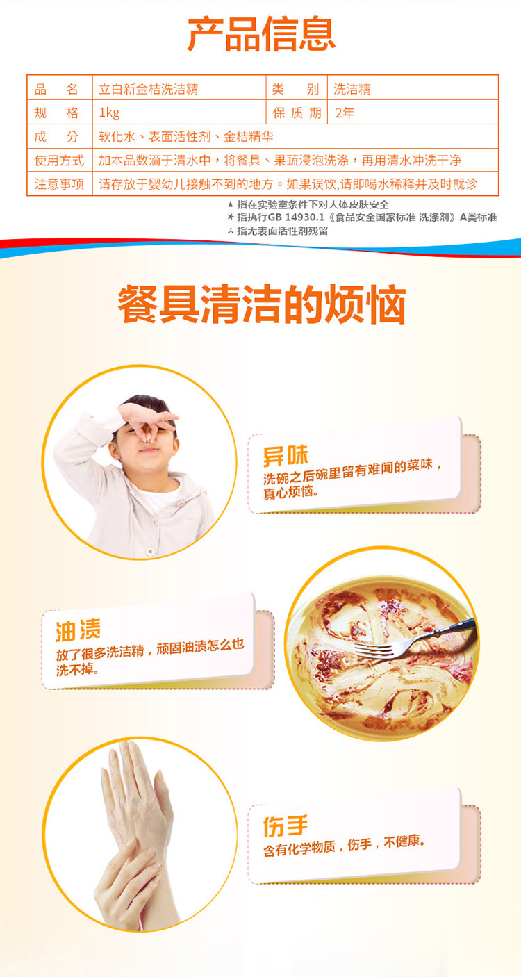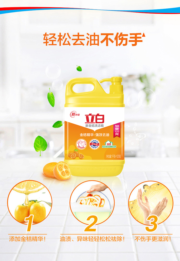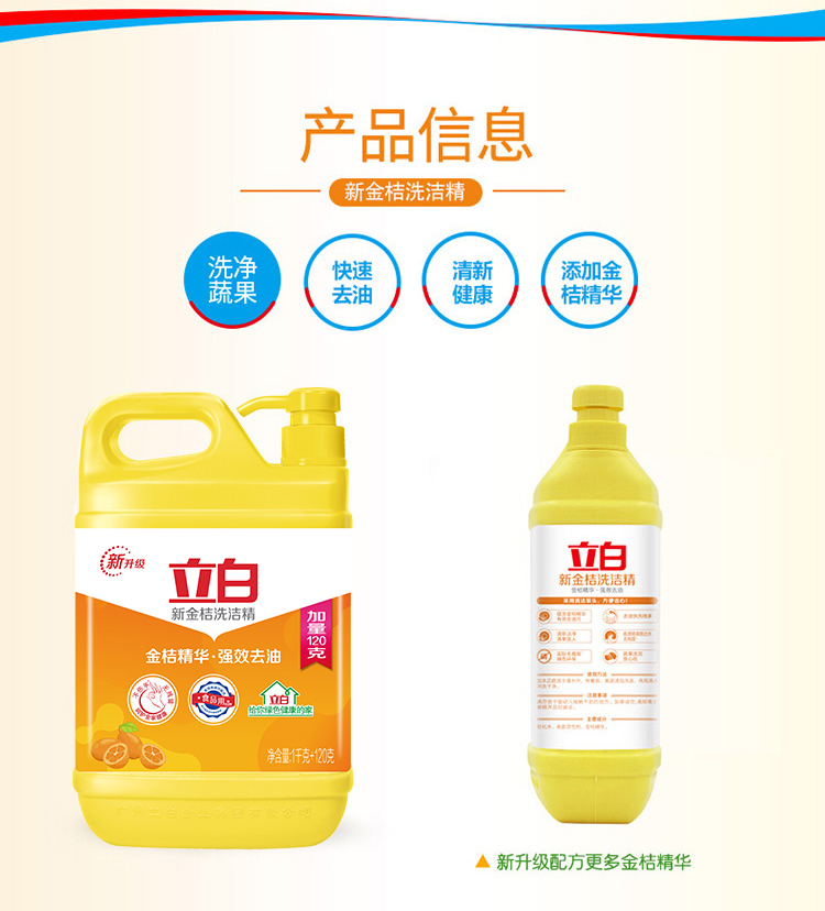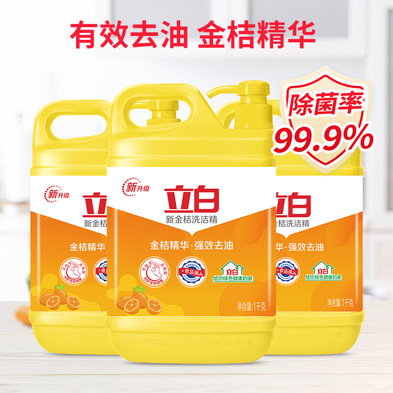 - 商品名称:立白新金桔洗洁精1KG*3瓶家庭装 果蔬清洗餐洗净 洗洁精 洗涤灵强效去油 食品用蔬果净