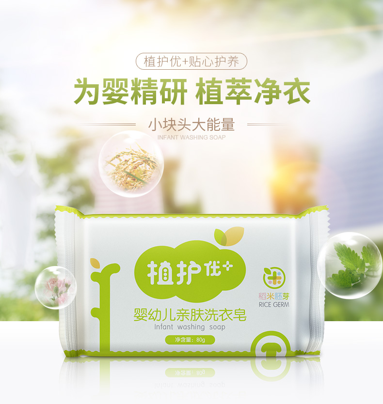 商品名称:植护 洗衣皂 婴儿洗衣皂80g*20块 去除污渍 易漂洗 温和亲肤 家庭实惠装