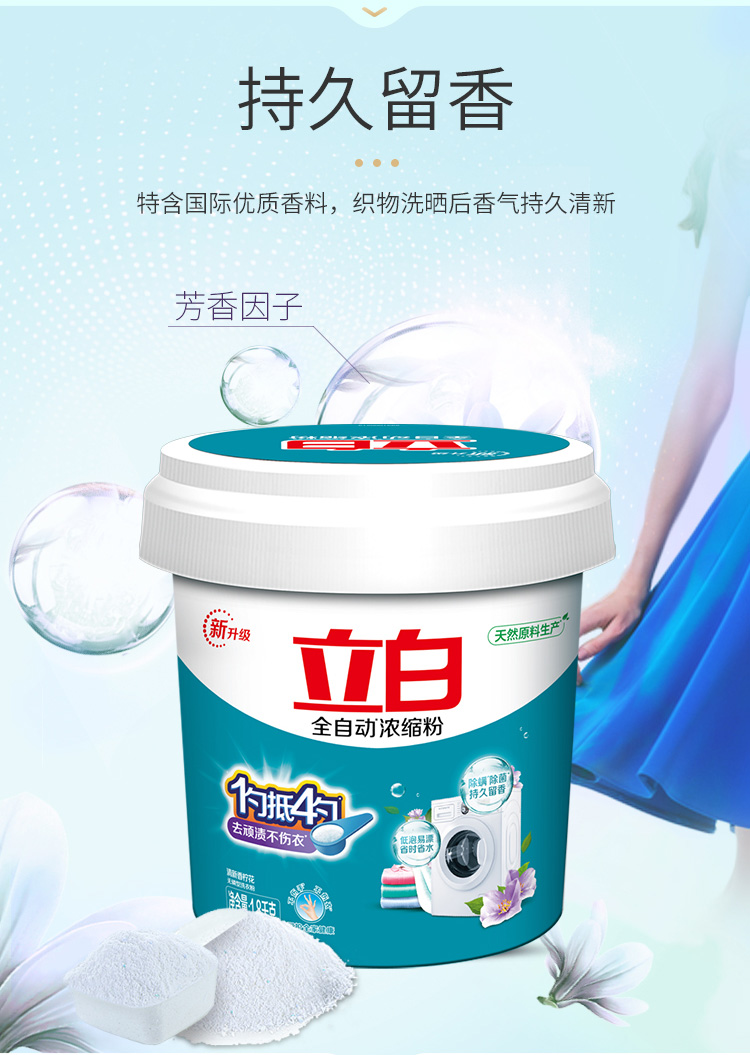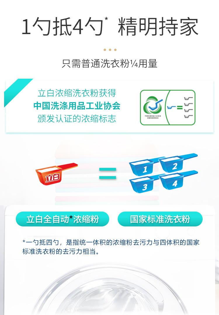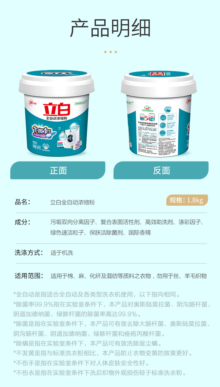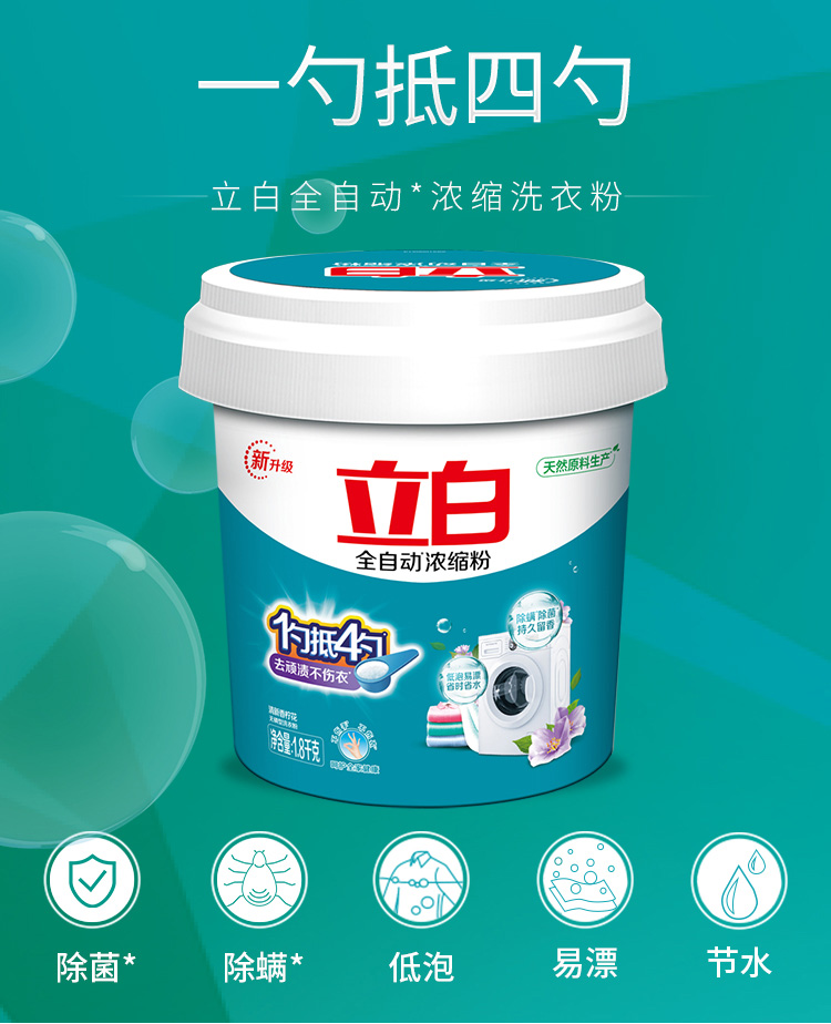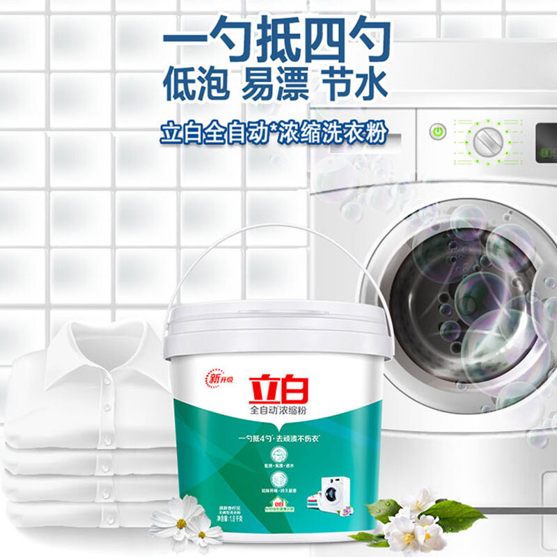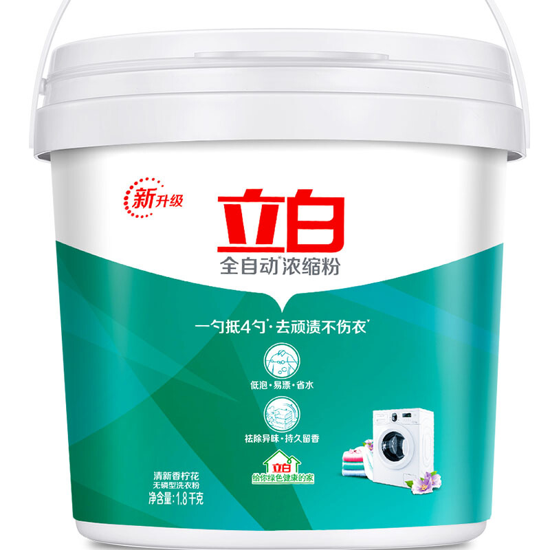 - 商品名称:立白 全自动超浓缩洗衣粉(自然清香)1.8kg/桶家庭装 无磷型 低泡易漂 用量少 一勺抵四勺