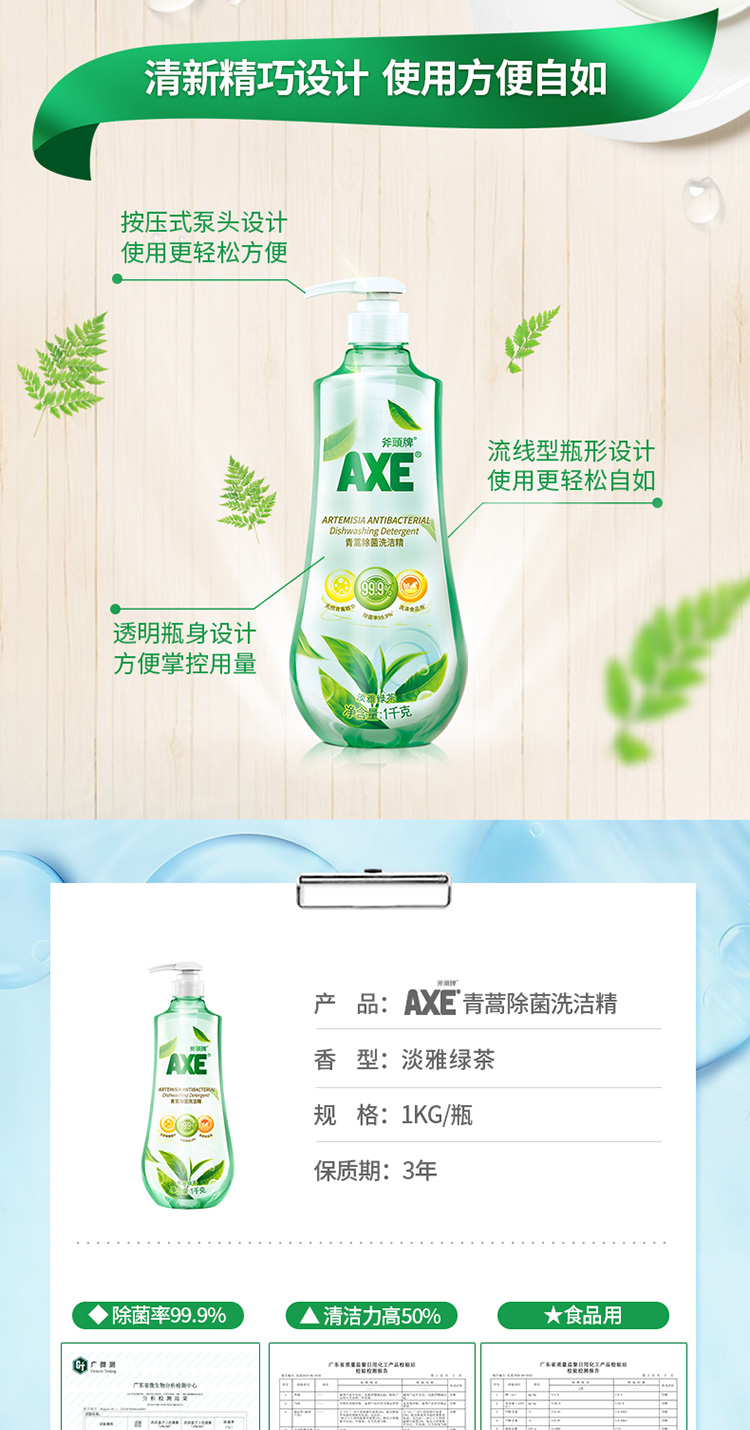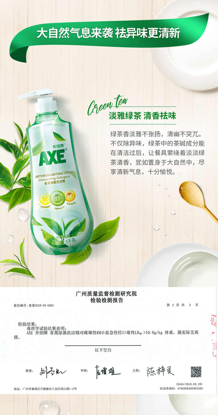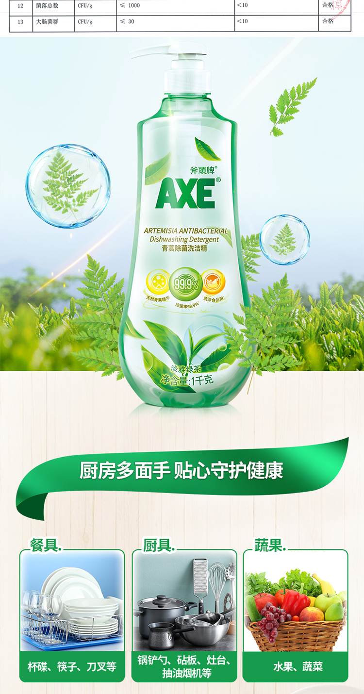 - 商品名称:斧头牌(AXE)青蒿除菌洗洁精1kg泵装 淡雅绿茶 天然青蒿精华 除菌率99.9% 全新升级 新老包装随机发货