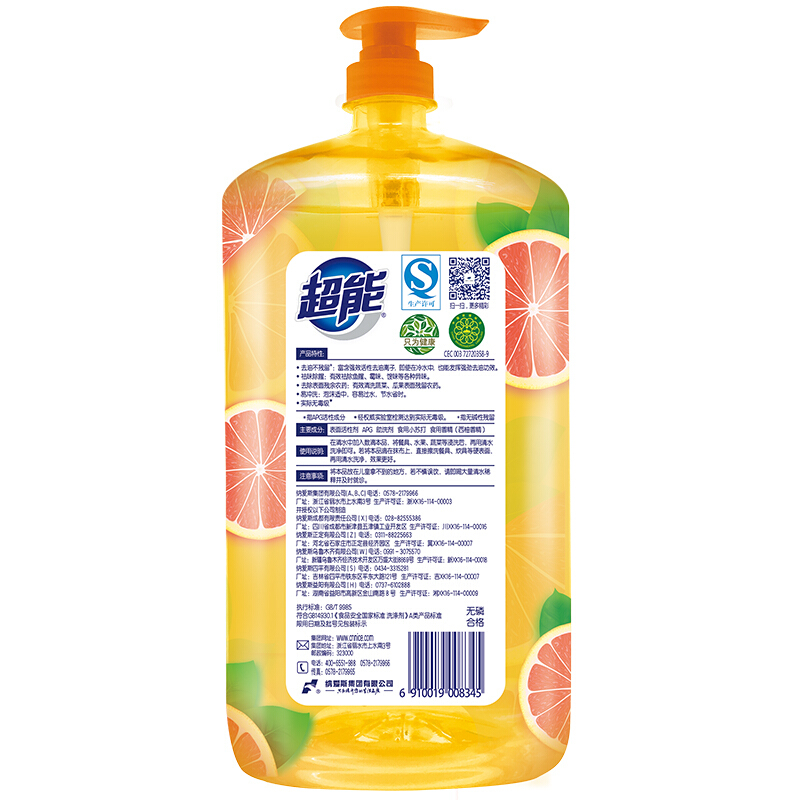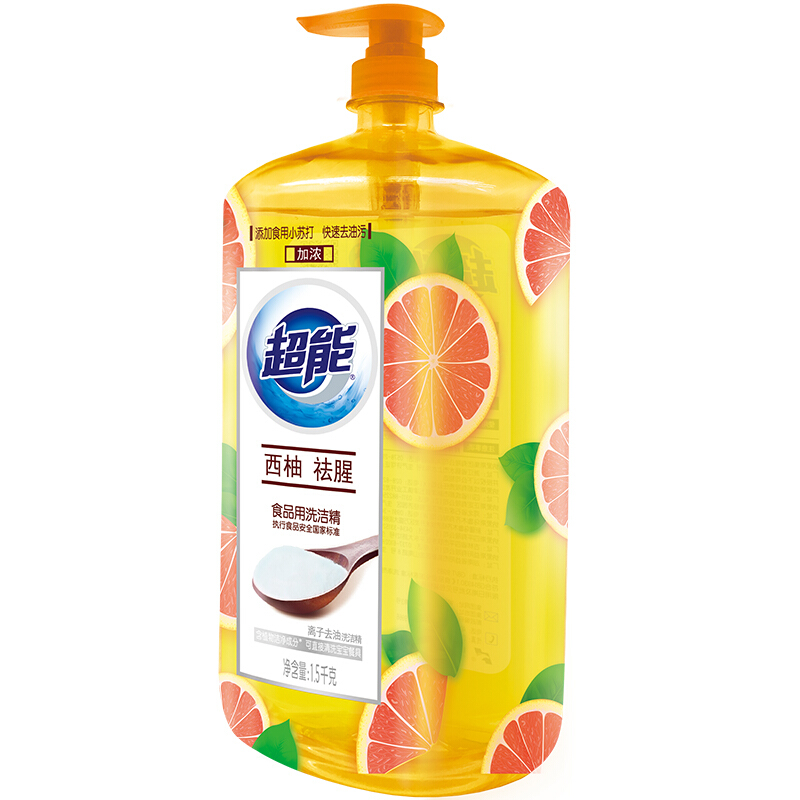 - 商品名称:超能 离子去油洗洁精(西柚祛腥)1.5kg 加浓 食用小苏打去油污(新老包装随机发货)