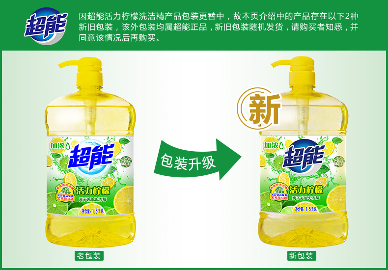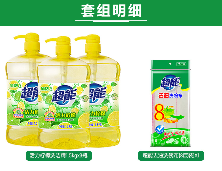 - 商品名称:超能 活力柠檬洗洁精1.5kg*3加洗碗布 加浓去油无残留安全(新老包装随机发货)