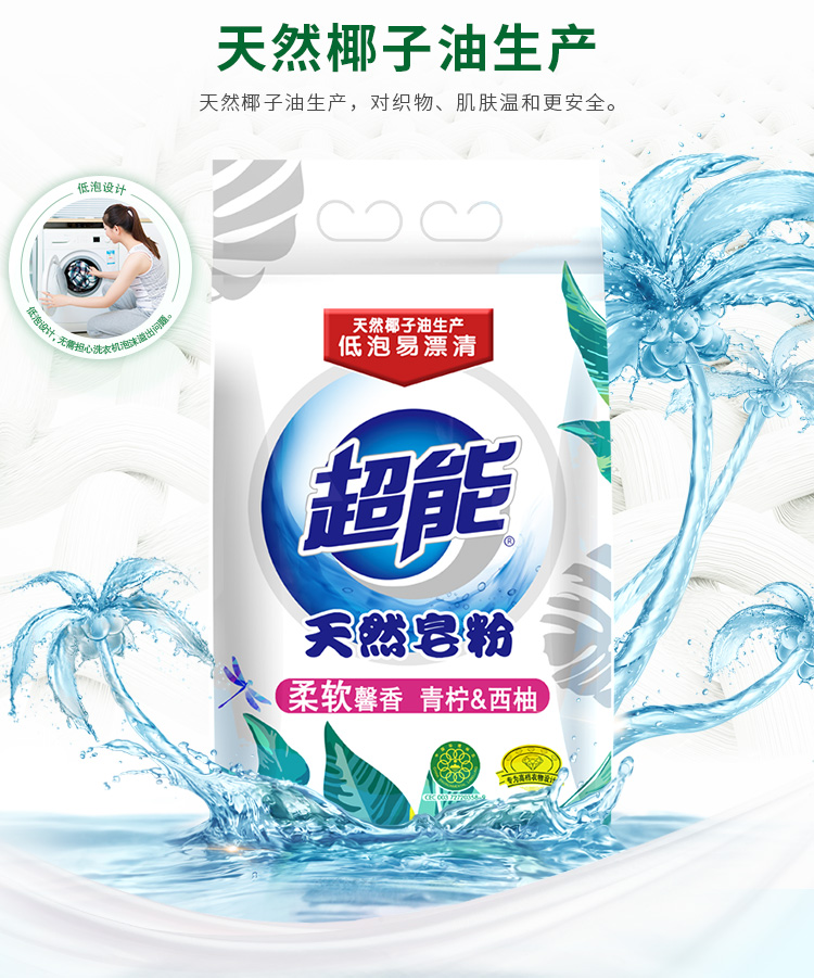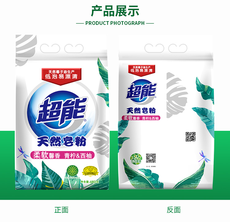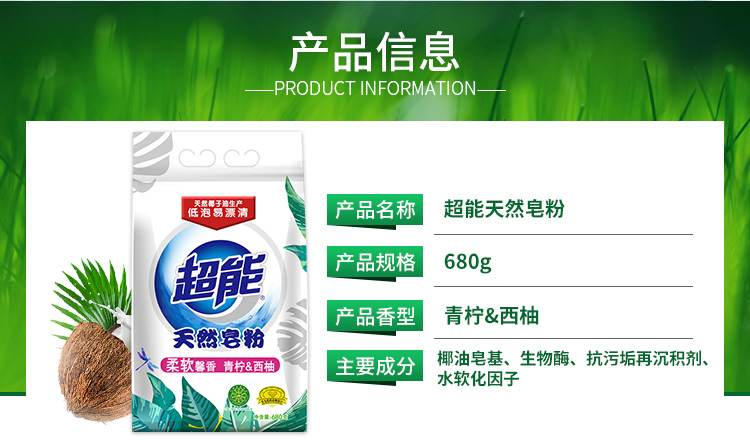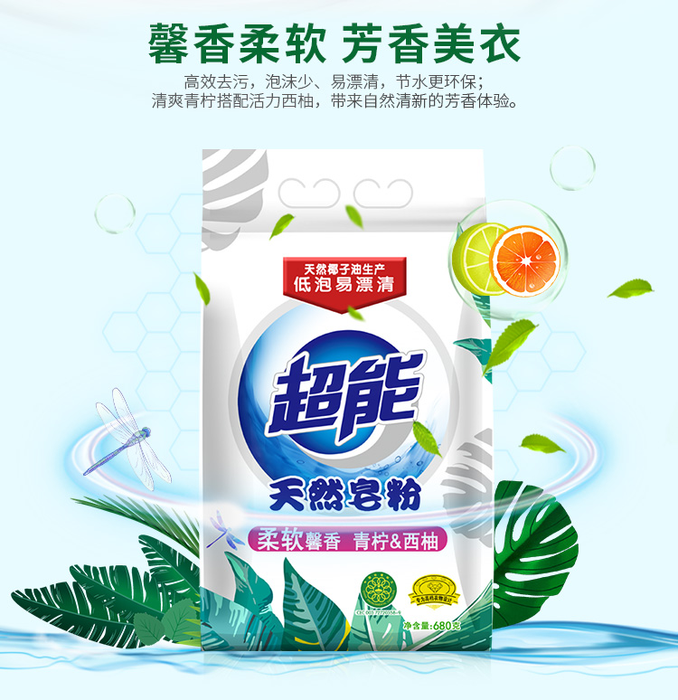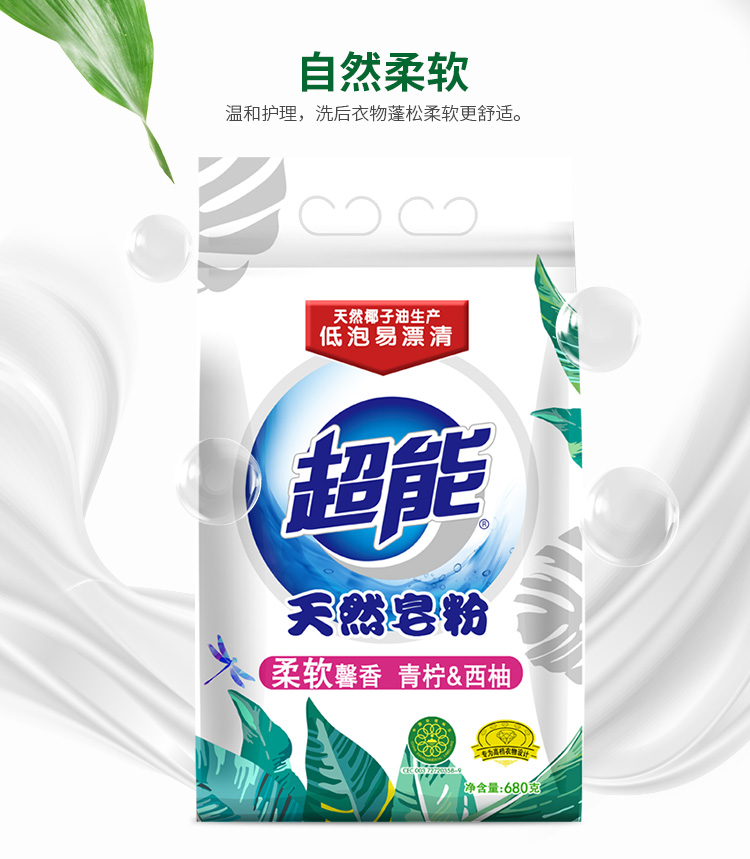 - 商品名称:超能 天然皂粉(馨香柔软)680g 洗衣粉 西柚青柠香型 天然椰油 温和不刺激 低泡 深层去污(新老包装随机发)