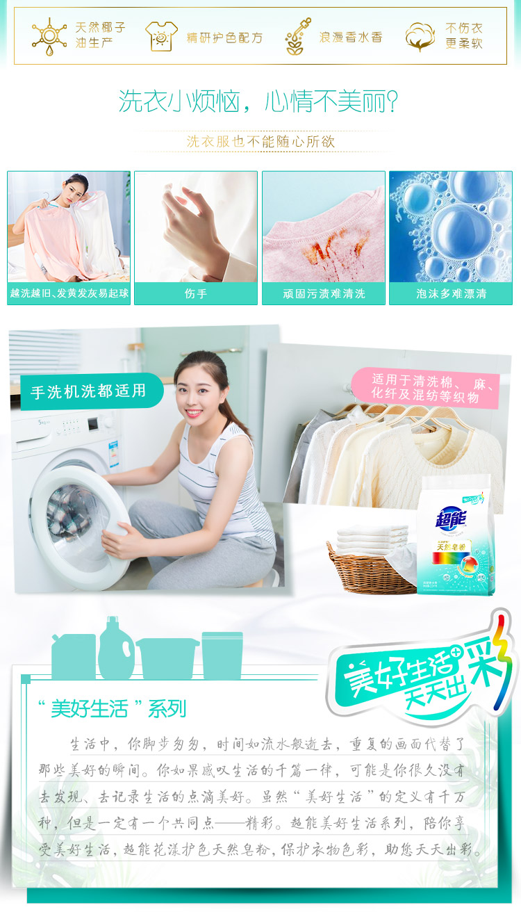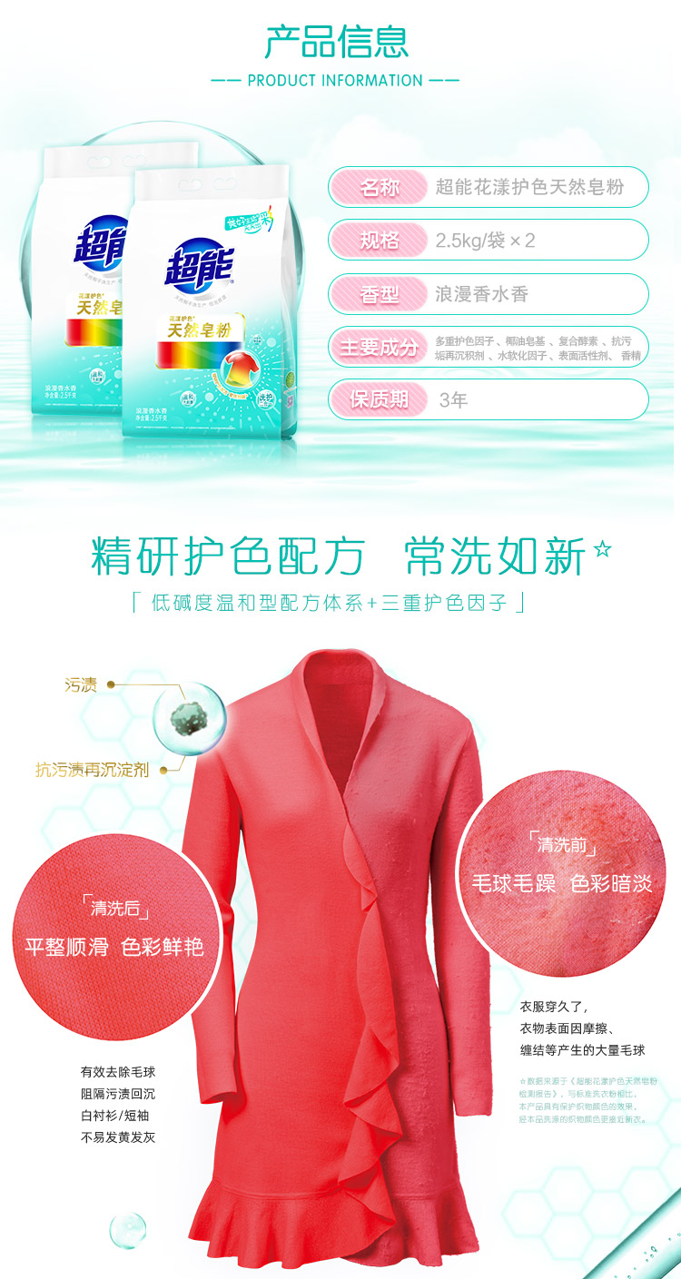- 商品名称:超能 皂粉 花漾护色10斤 洗衣粉 护色防串色 香水香型洗衣粉 低泡易漂