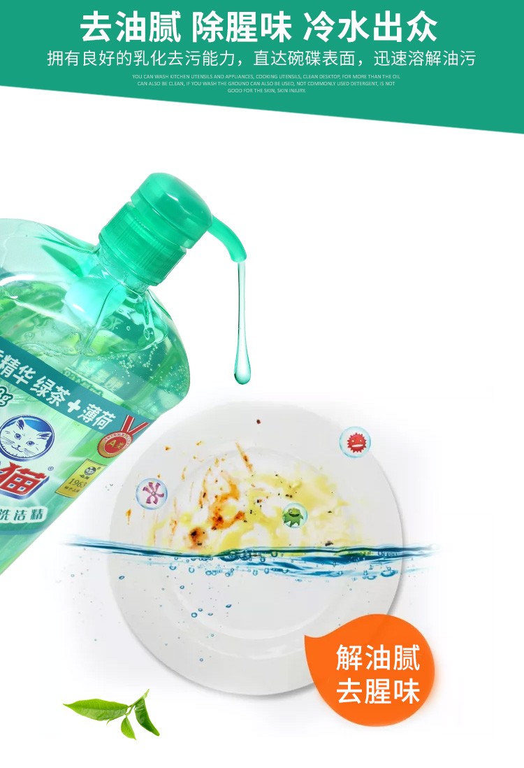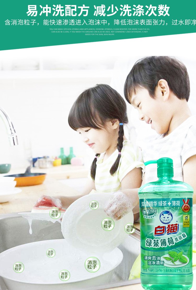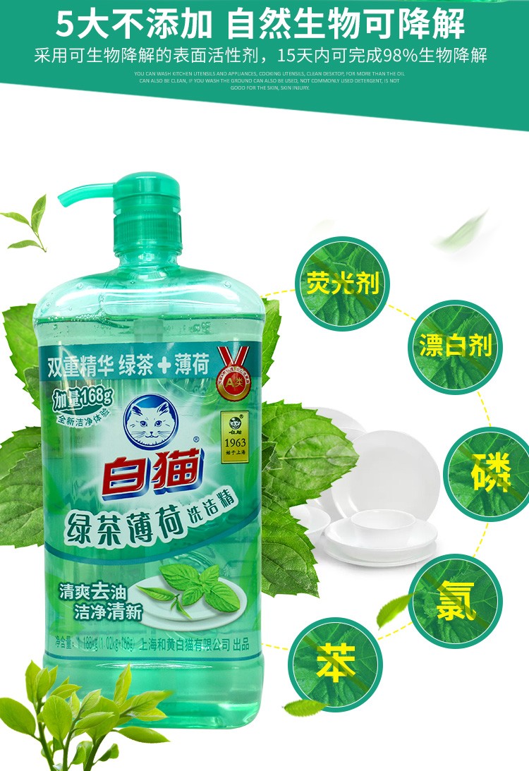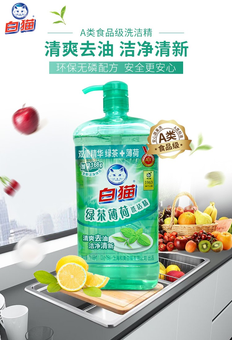商品名称:白猫洗洁精 绿茶薄荷清香型1.188kg*2瓶足量装洗洁精 洗碗液 家用果蔬清洗洗洁剂