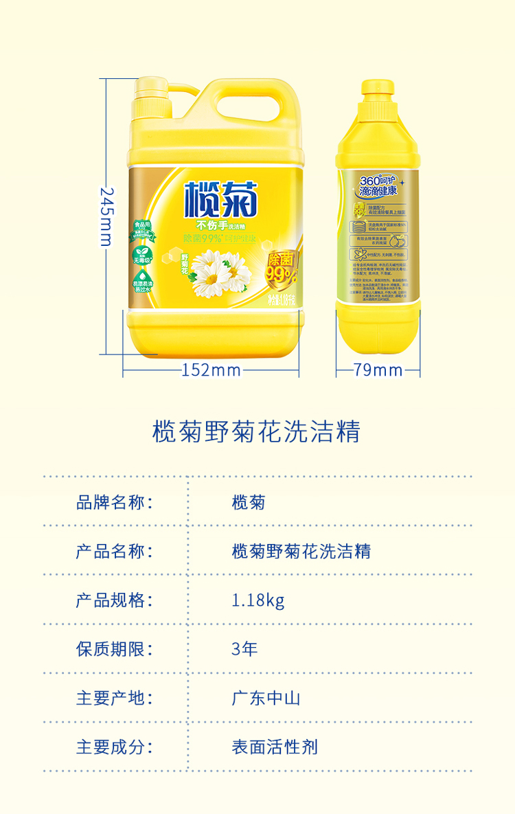 - 商品名称:榄菊 野菊花不伤手洗洁精1.18kg/瓶 食品用 蔬果洗涤去油祛味