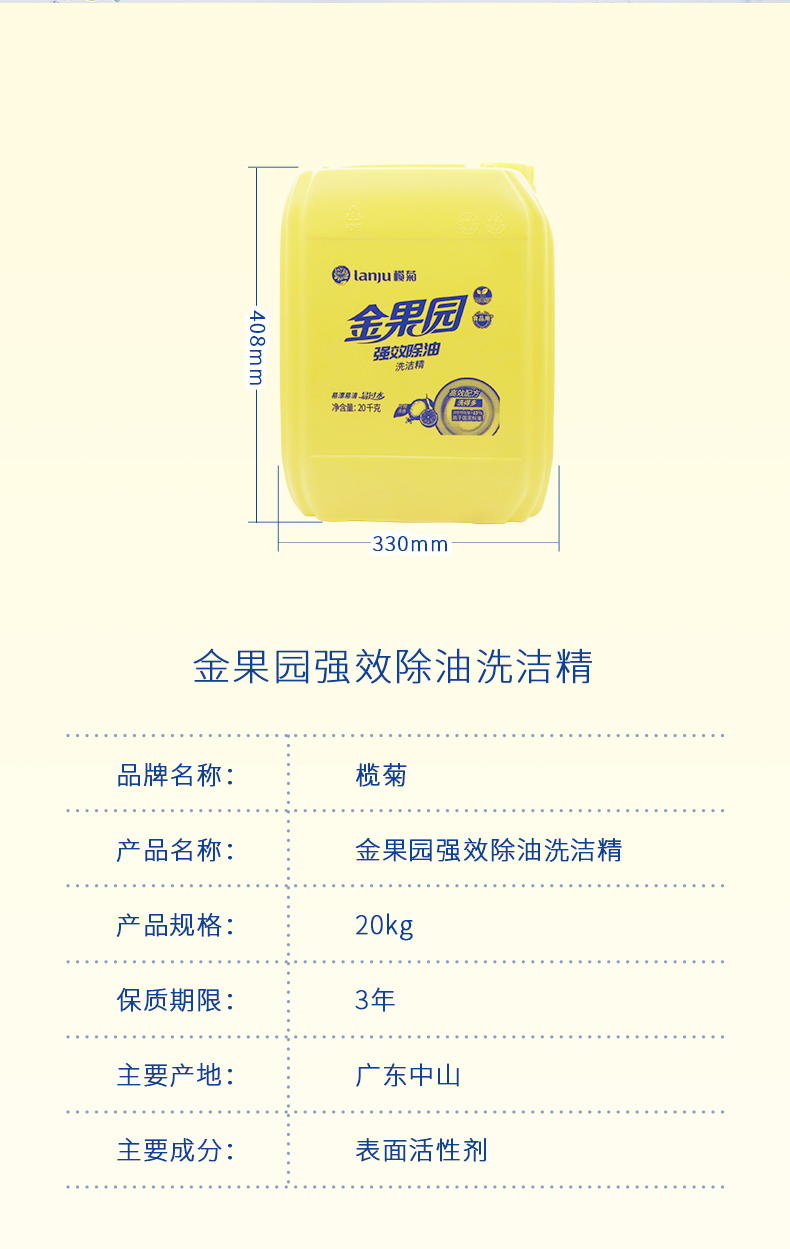 - 商品名称:榄菊 柠檬洗洁精大桶20kg 商用餐具洗碗洗涤灵A类食品用果蔬清洗剂 洁净去油