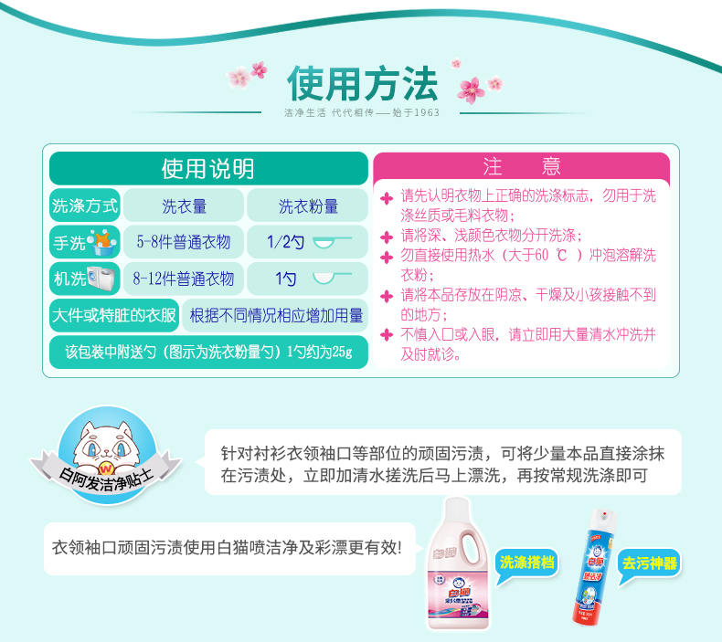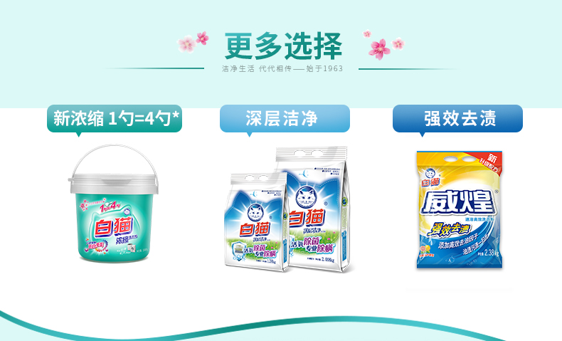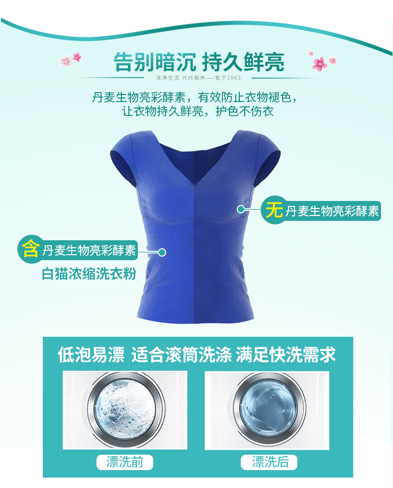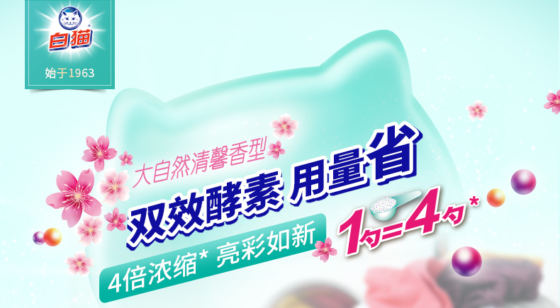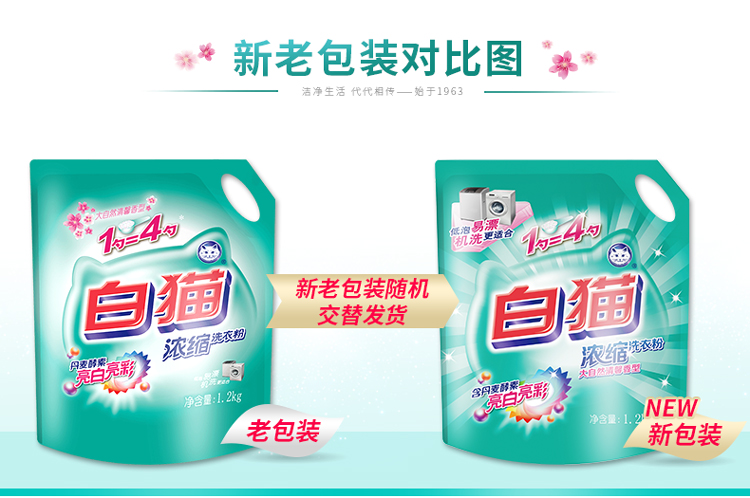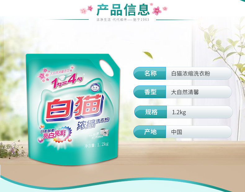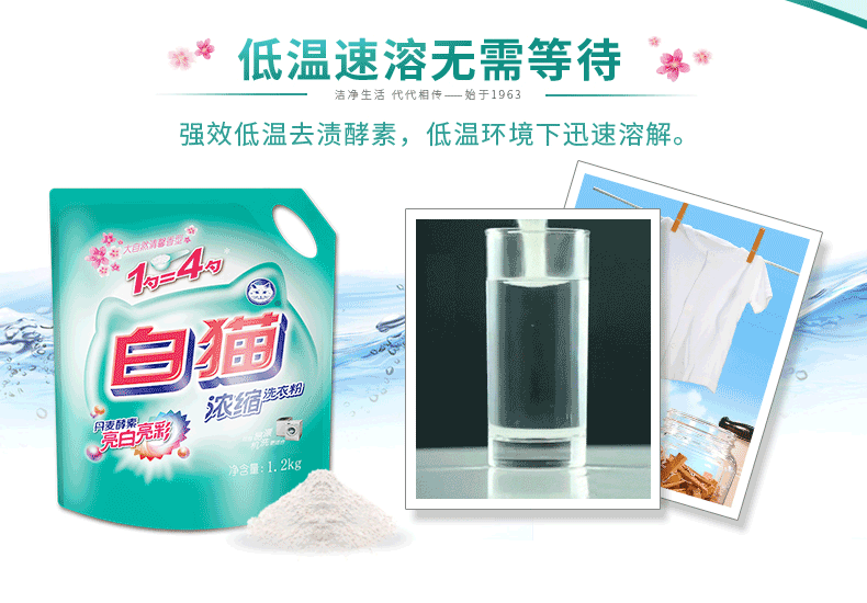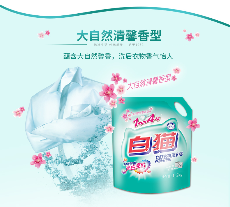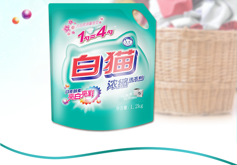 - 商品名称:白猫 新浓缩洗衣粉1200g/袋 一勺等于四勺 丹麦进口生物酵素 低温速溶