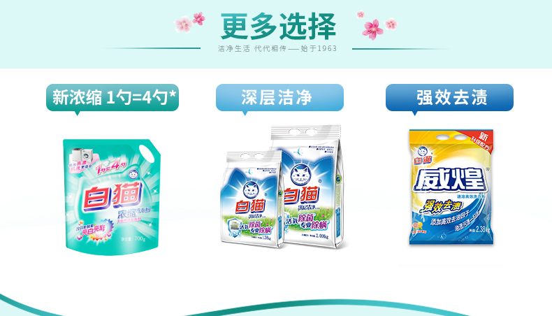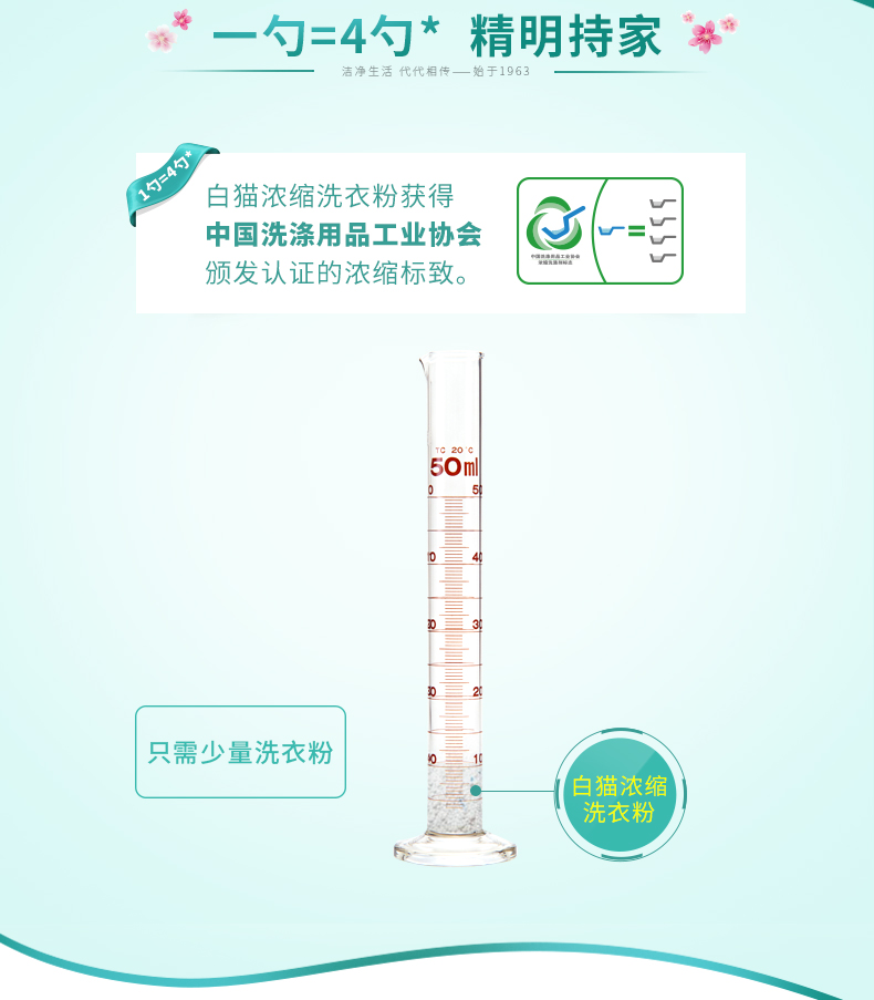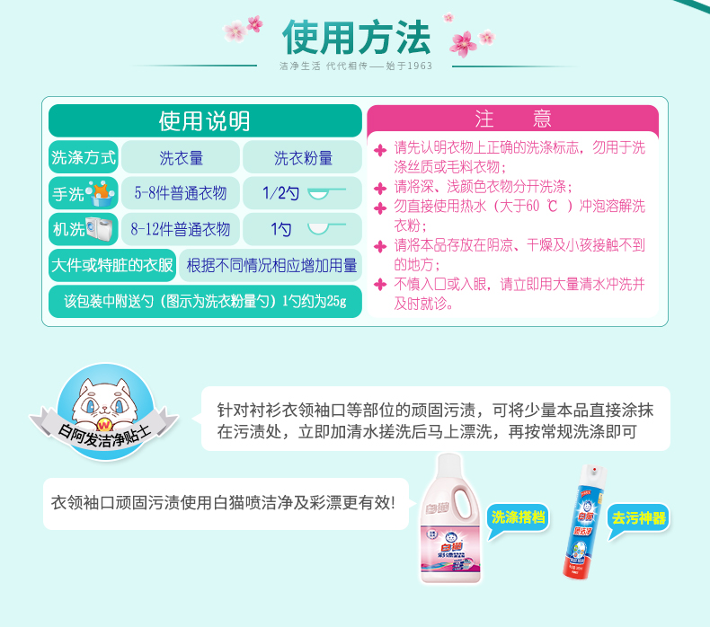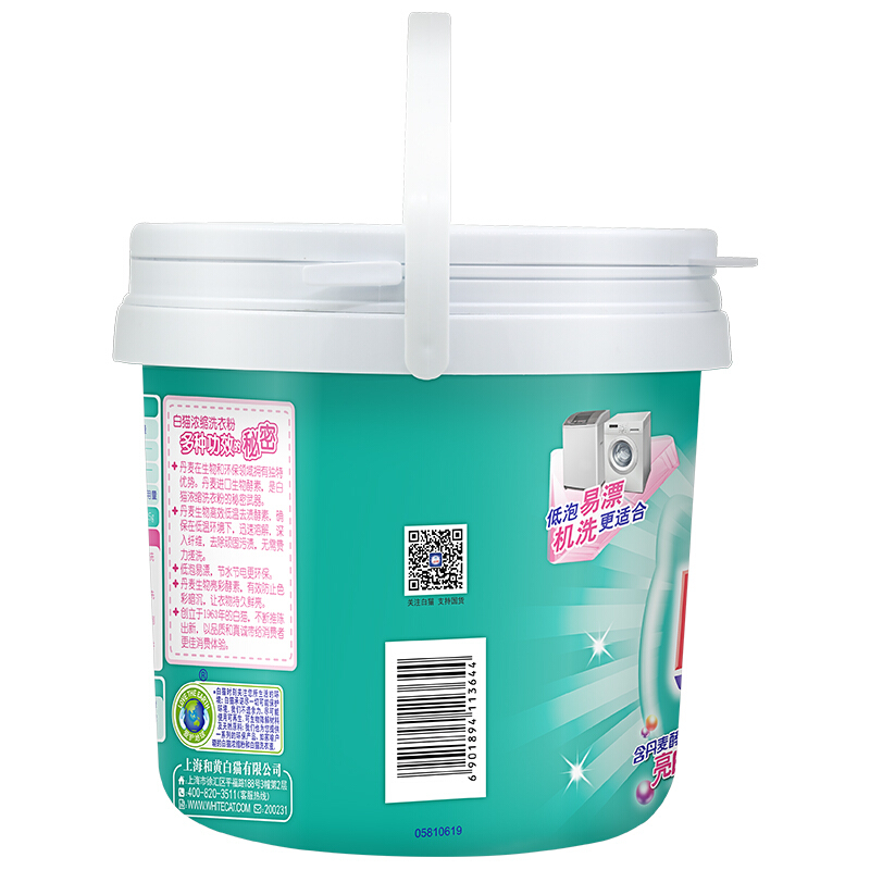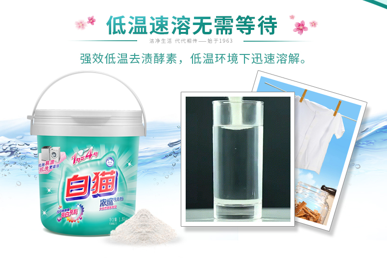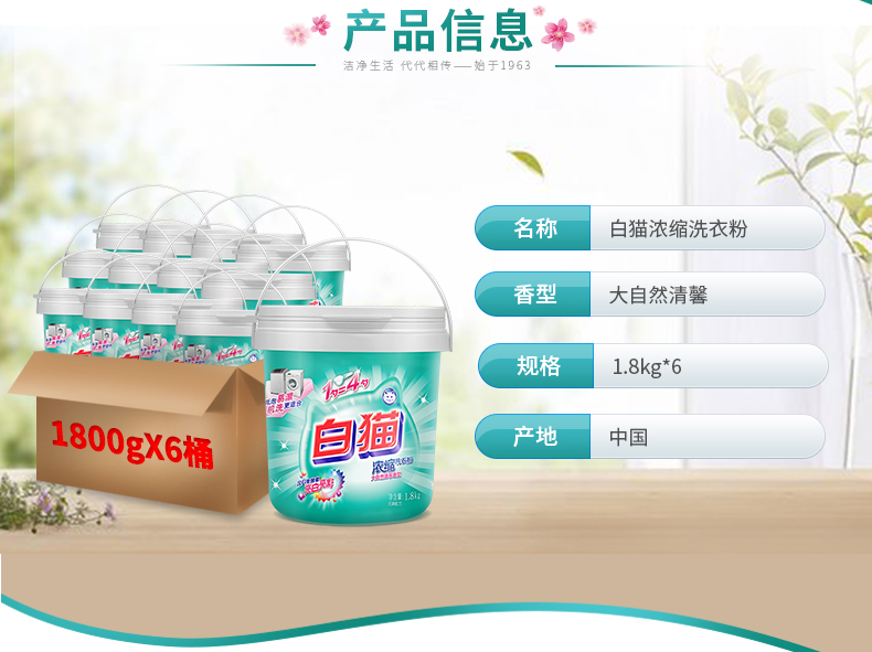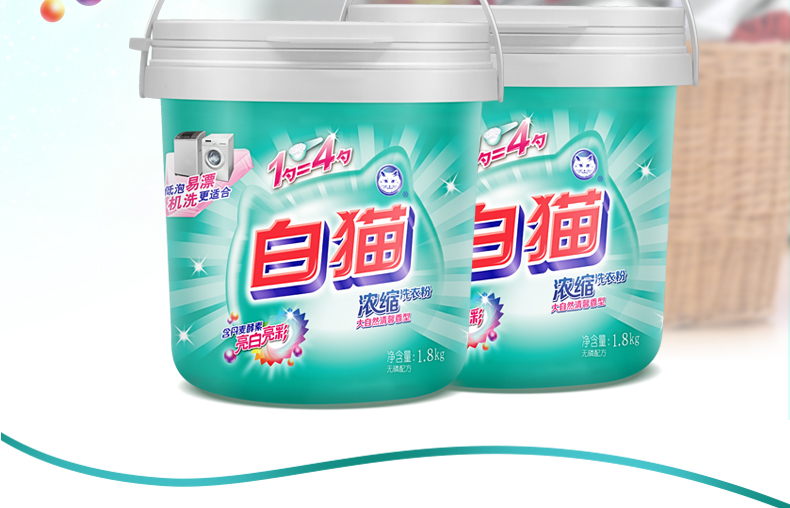 商品名称:白猫 新浓缩洗衣粉1800g*6/桶 (整箱) 一勺等于四勺 丹麦进口生物酵素 翻盖式便取设计(内赠勺子)