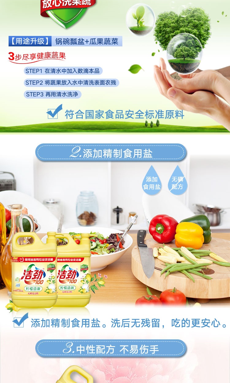 - 商品名称:洁劲100 柠檬洗洁精 1.3kg*2 金龙鱼推荐 不伤手 果蔬净 洗碗液 去油污