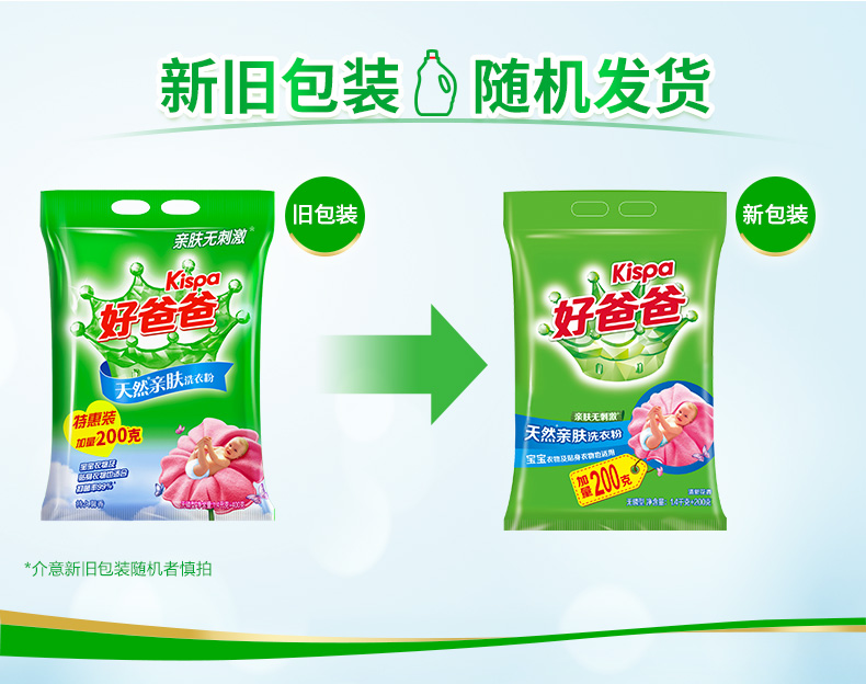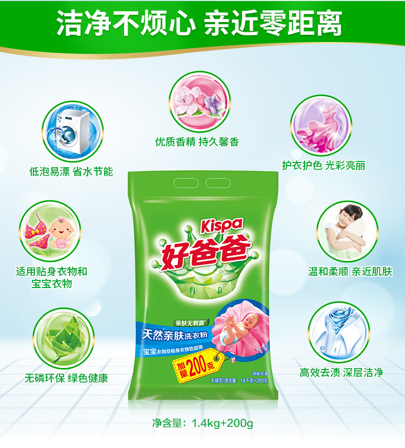 - 商品名称:好爸爸Kispa 亲肤洗衣粉亲肤无刺激实惠装 1.4kg+200g