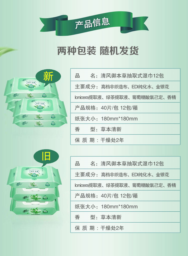 - 商品名称:清风 (APP) 湿巾 御本草杀菌湿纸巾40片*12包(整箱销售)