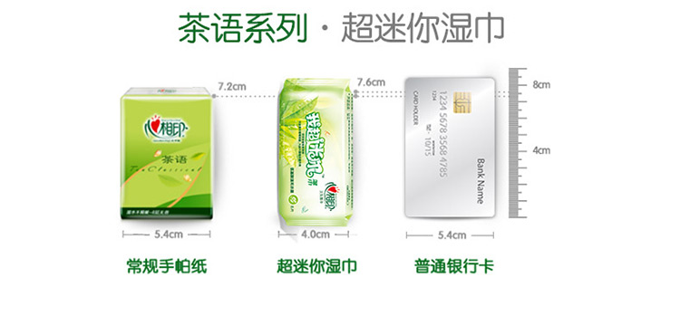- 商品名称:心相印湿巾 茶语系列超迷你小包装 8片*8包*3提/袋便携随身装湿纸巾