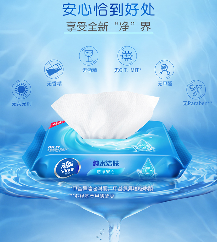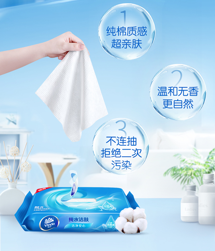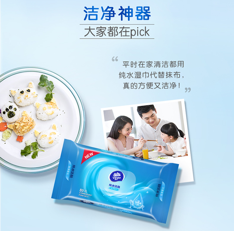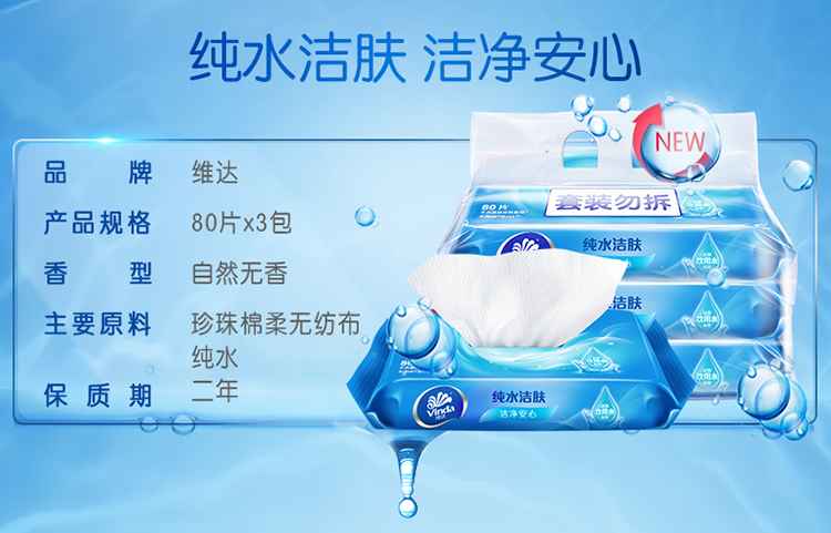 - 商品名称:维达(Vinda) 湿巾纸巾 RO纯水湿巾80片*3包量贩装(母婴可用)