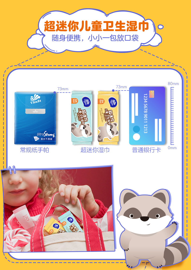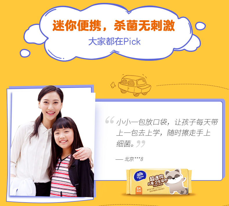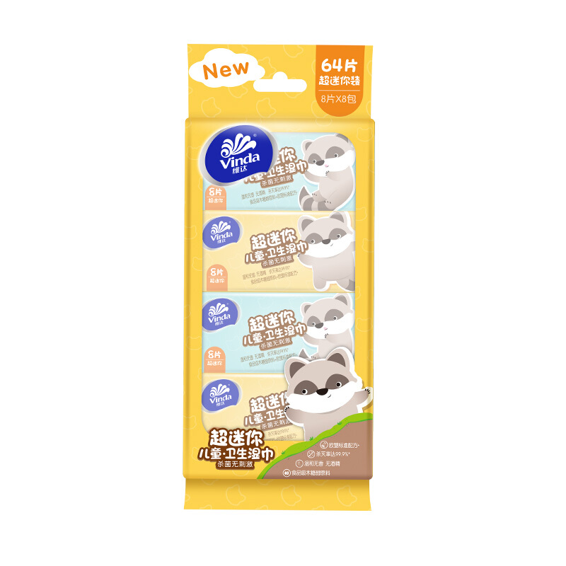 - 商品名称:维达(Vinda)湿巾纸巾 儿童杀菌洁肤卫生湿巾8片*8包 超迷你 出门常备