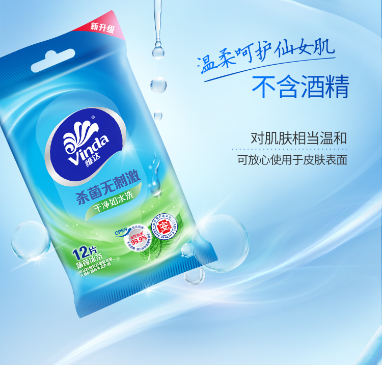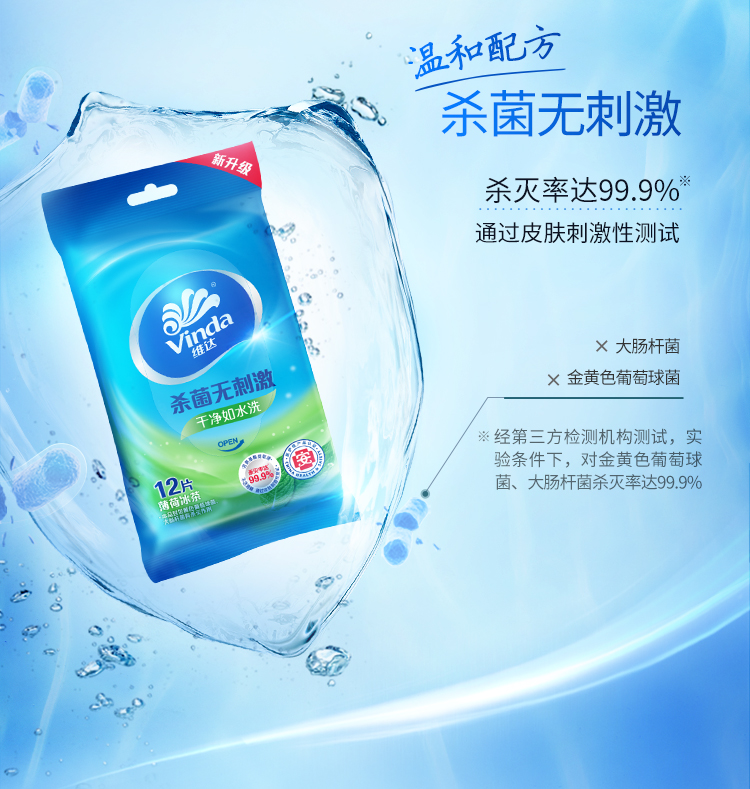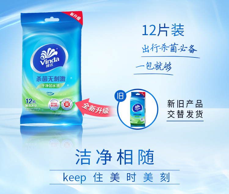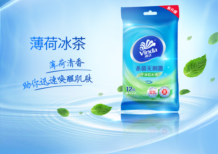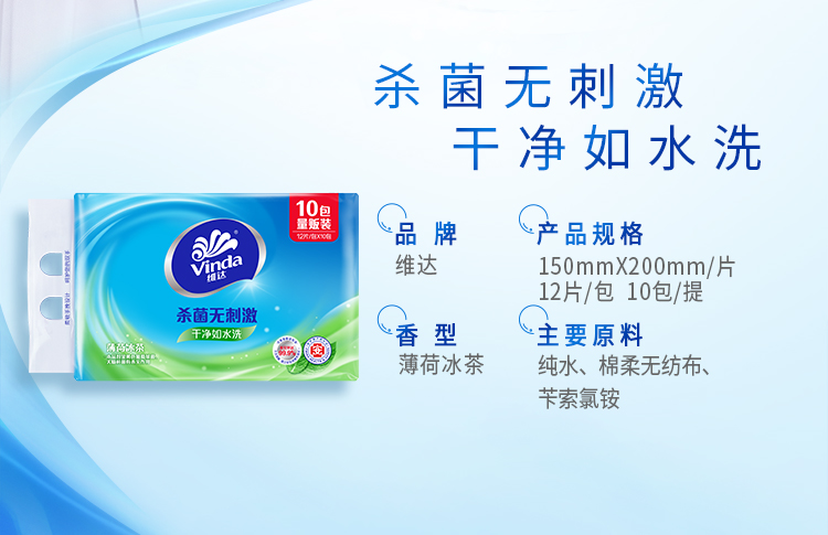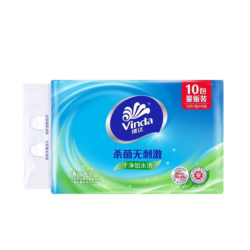 商品名称:维达 Vinda 维达(Vinda)湿巾 薄荷冰茶杀菌洁肤卫生湿巾 12片*10包 便携健康出行