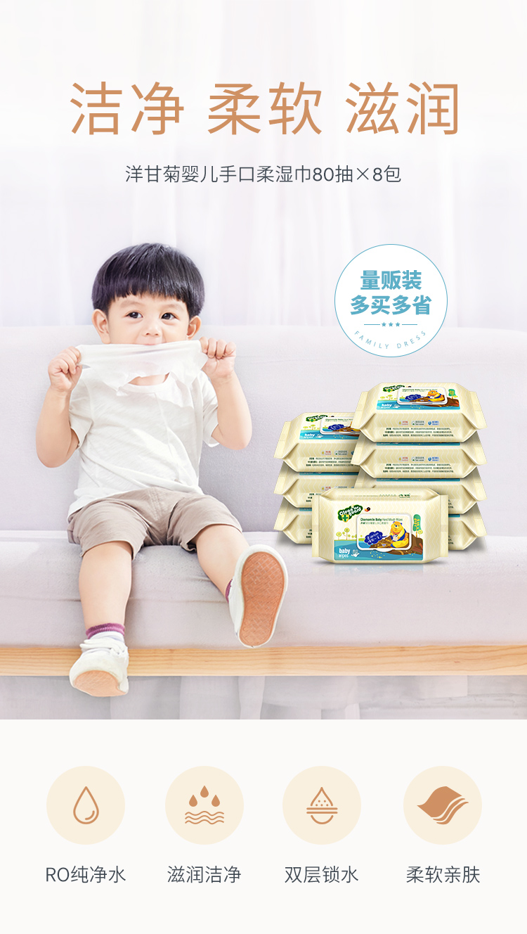 - 商品名称:子初 湿巾 婴儿湿纸巾 一次性洗脸巾擦脸巾 宝宝柔湿巾 洋甘菊手口湿巾80抽*8包
