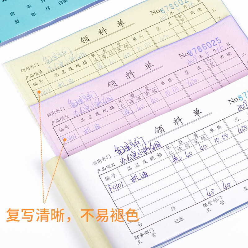 商品名称:得力 (deli)无碳复写 财务用品 会计凭证 财会单据10本装 三联领料单 3488(10本装)