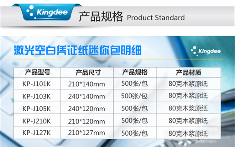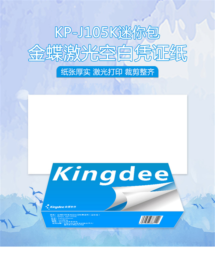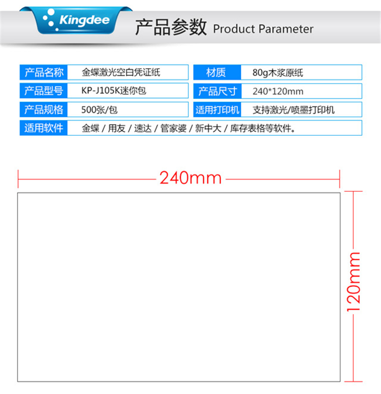 商品名称:Kingdee 金蝶空白凭证纸KP-J105K 通用空白凭证打印纸240*120mm 500张/包