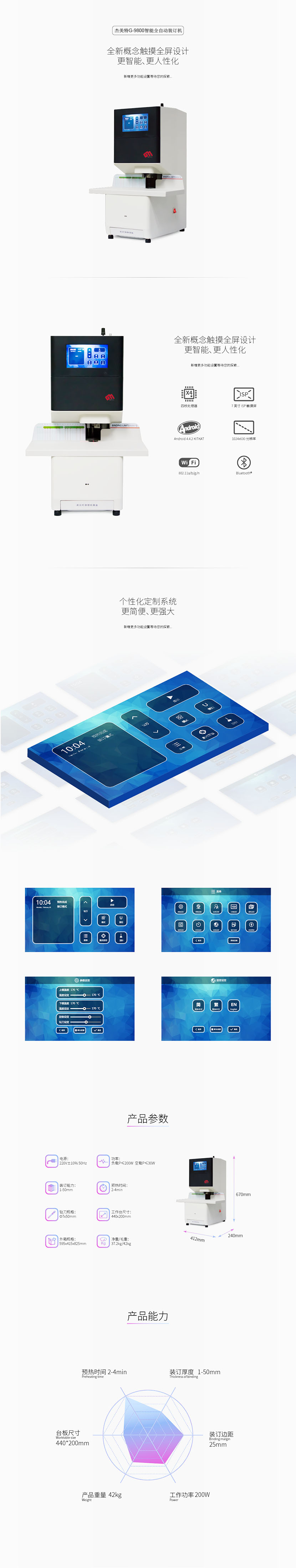 - 商品名称:杰美特G-9800智能大屏全自动装订机