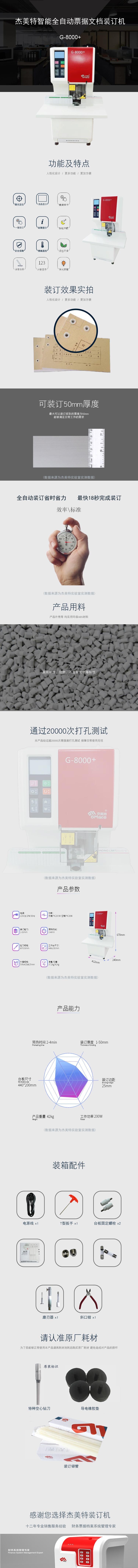 - 商品名称:杰美特G-8000+智能全自动票据文档装订机