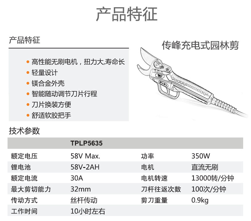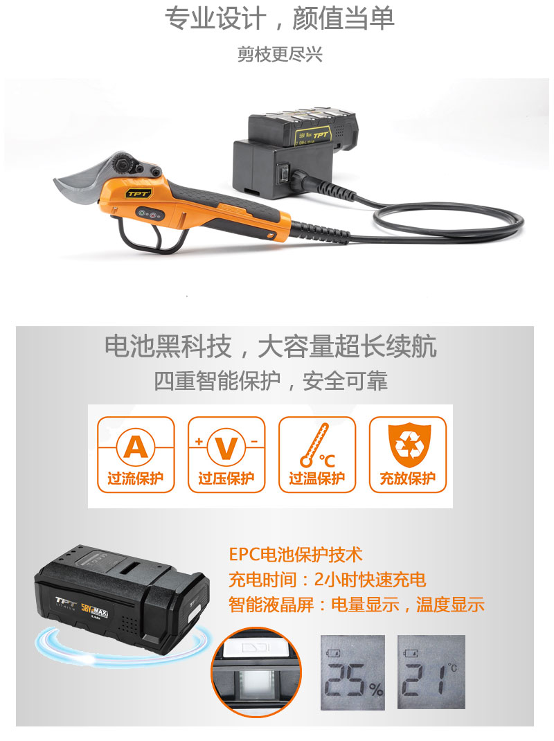 商品名称:传峰 58V电动果树剪刀修枝剪 充电式园林园艺剪枝剪树枝剪果树剪子充电剪刀枝剪神器 58V带一电一充4AH电池