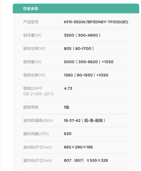 商品名称:美的(Midea)KFR-35GW/BP3DN8Y-TP200(1)大1.5匹 变频冷暖 空调挂机 一级能效