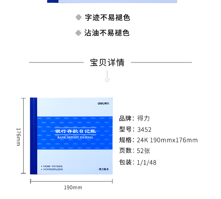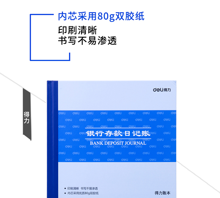 - 商品名称:得力(deli)银行存款日记账 24K标准财务账册 财务用品 3452