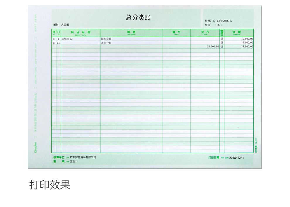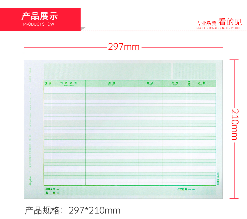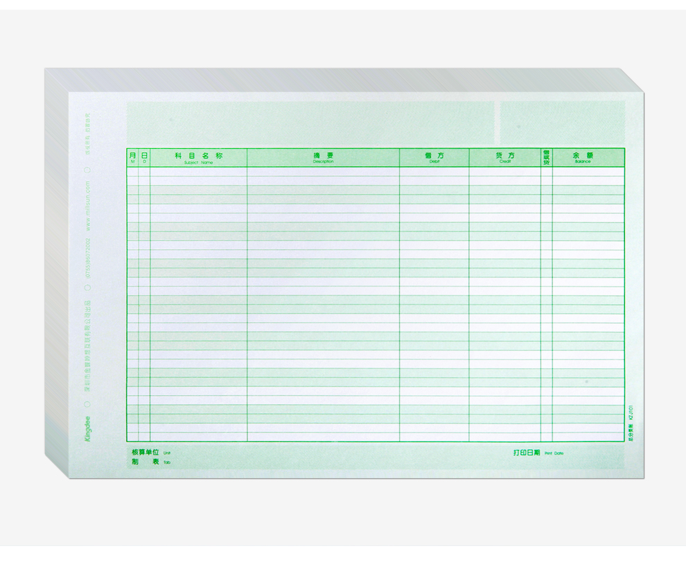 - 商品名称:金蝶kis、k3财务会计记账本账册账簿账页打印纸A4总分类账 KZ-J101