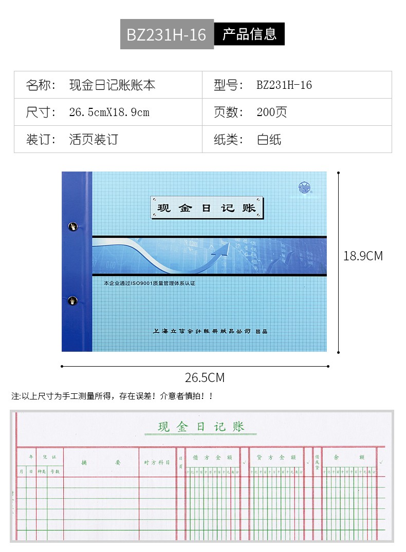 - 商品名称:上海立信现金日记账本银行存款日记账总分类账会计账簿数量金额式三栏式帐本手工做总账收支明细账本 235-D银行存款日记账 1本装