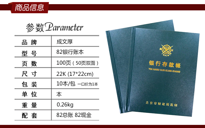 - 商品名称:成文厚 借贷式82 银行存款帐 银行日记帐本 硬皮账本17*22cm财务账册账页银行账