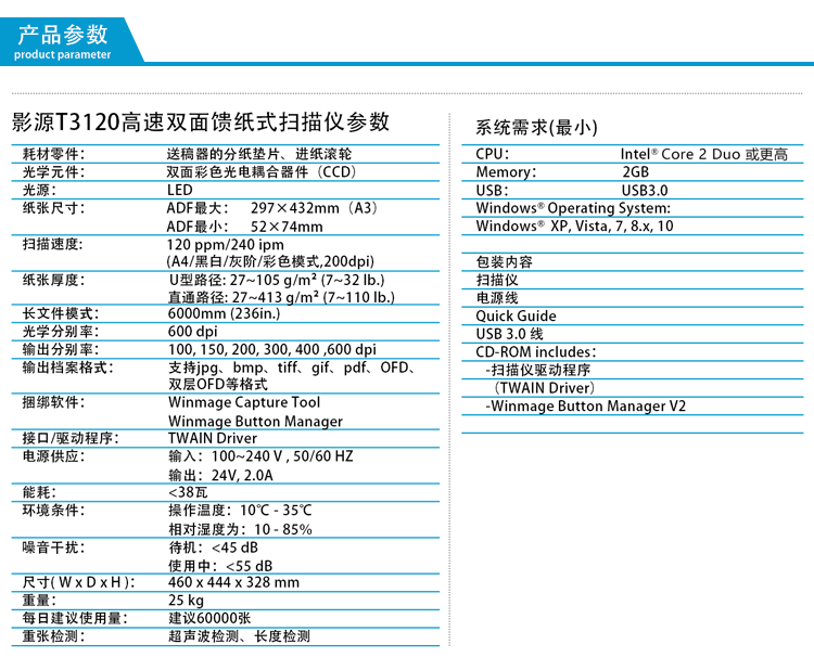 - 商品名称:影源T3120高速文档扫描仪