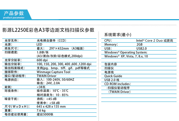 - 商品名称:影源L2250E彩色A3平板扫描仪