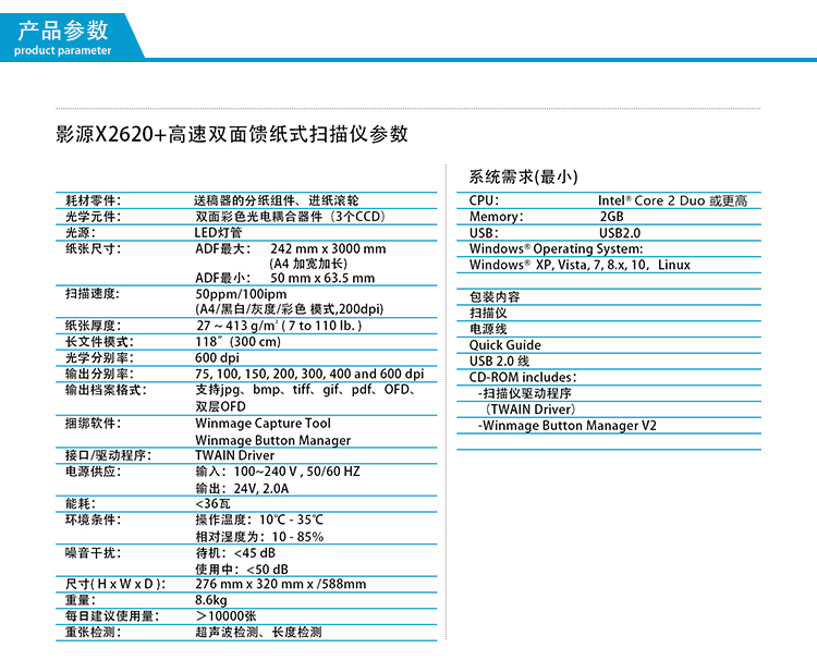 商品名称:影源X2620+高速文档扫描仪