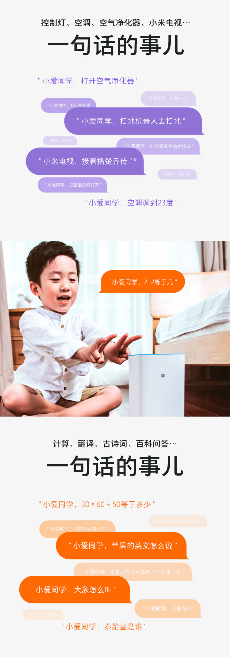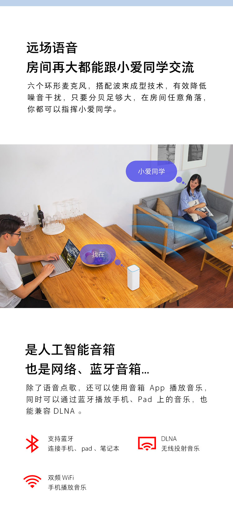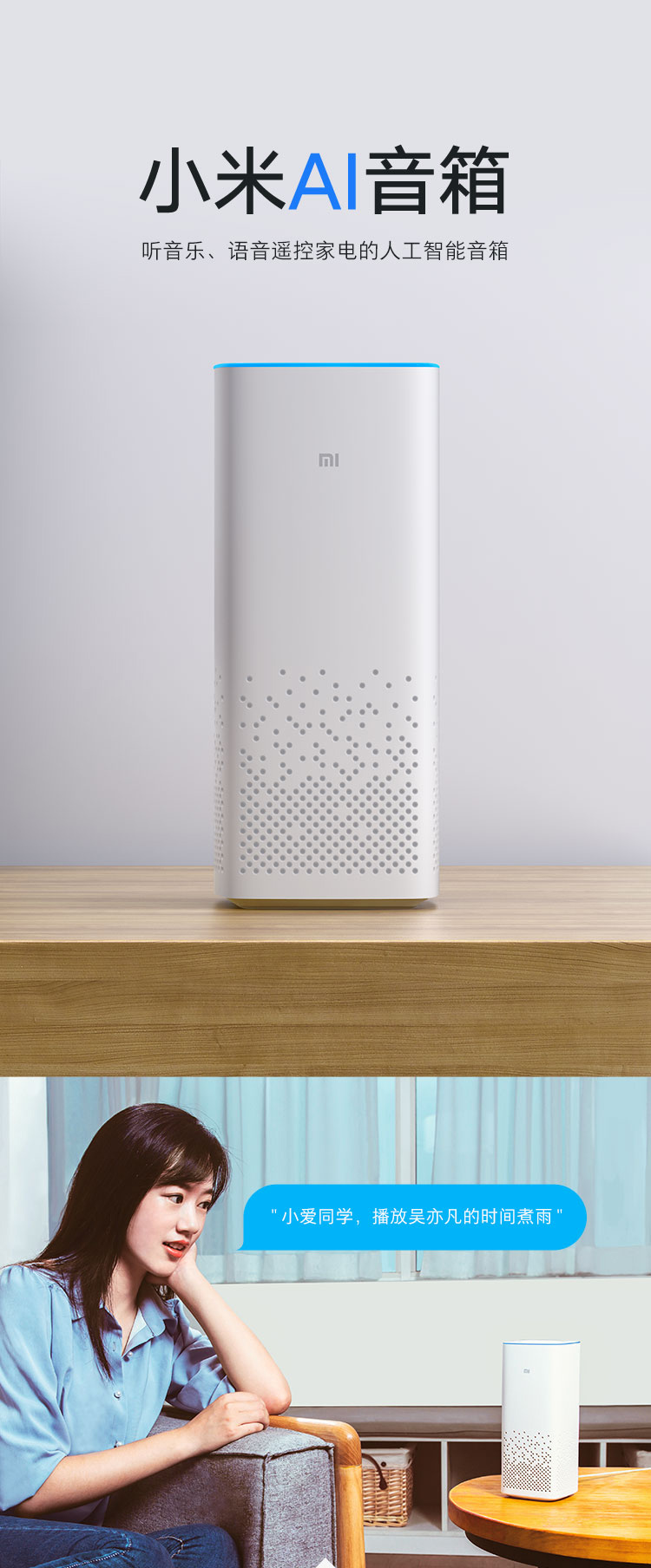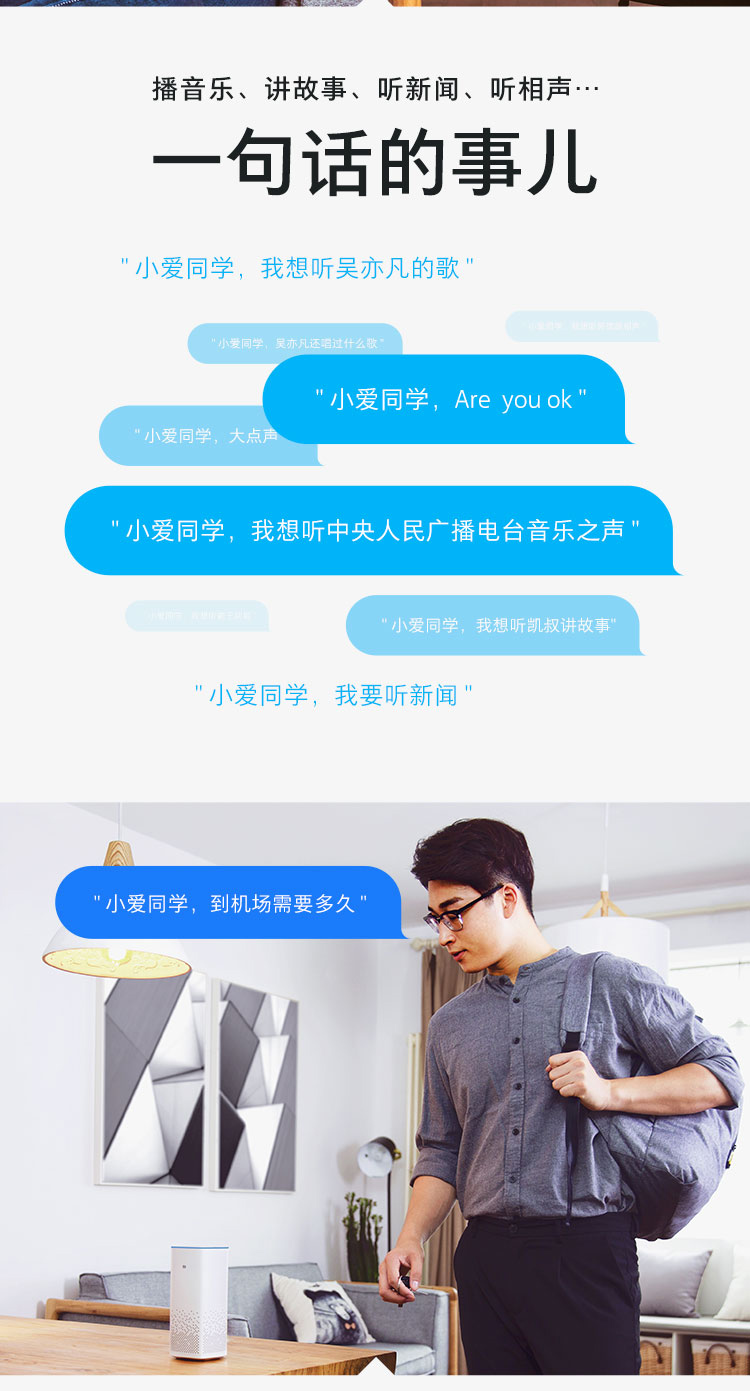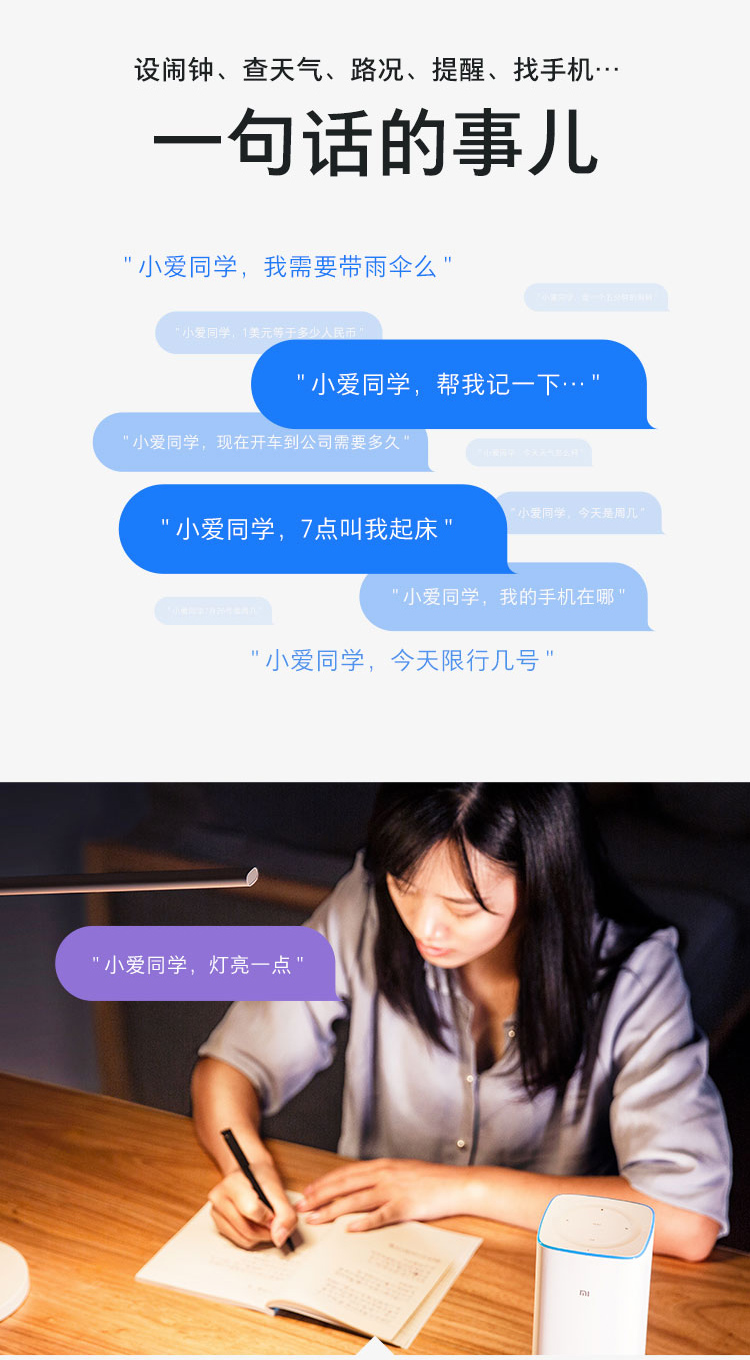 - 商品名称:小米AI音箱 白色 小爱同学人工智能音箱 听音乐语音遥控家电 人工智能音响 蓝牙wifi