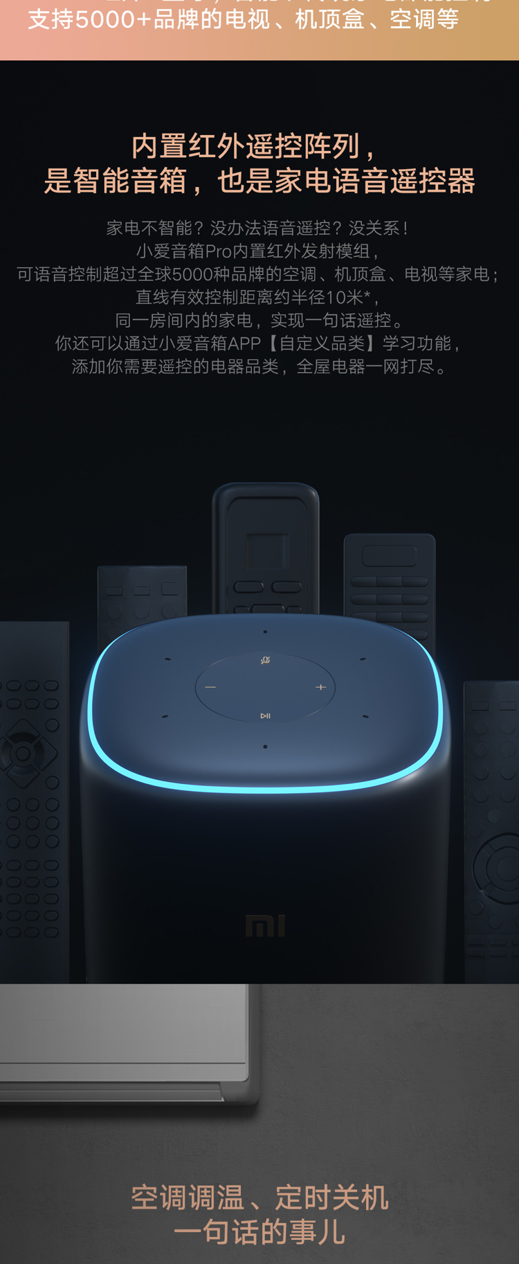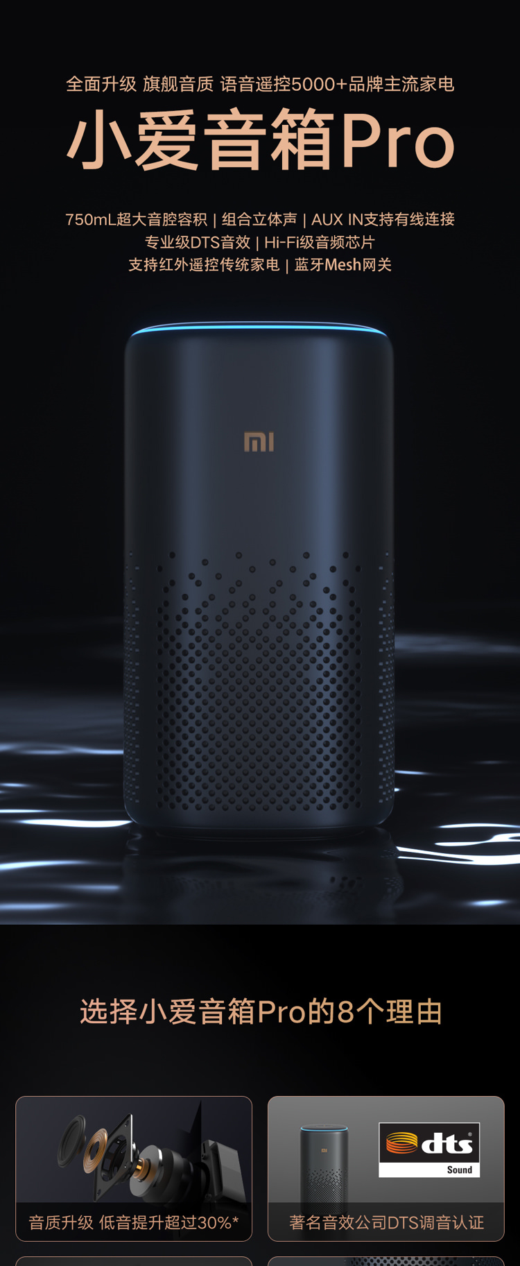 商品名称:小米小爱音箱 Pro 黑色 小爱同学智能音箱 性能升级 智能设备控制 遥控传统家电 蓝牙Mesh网关