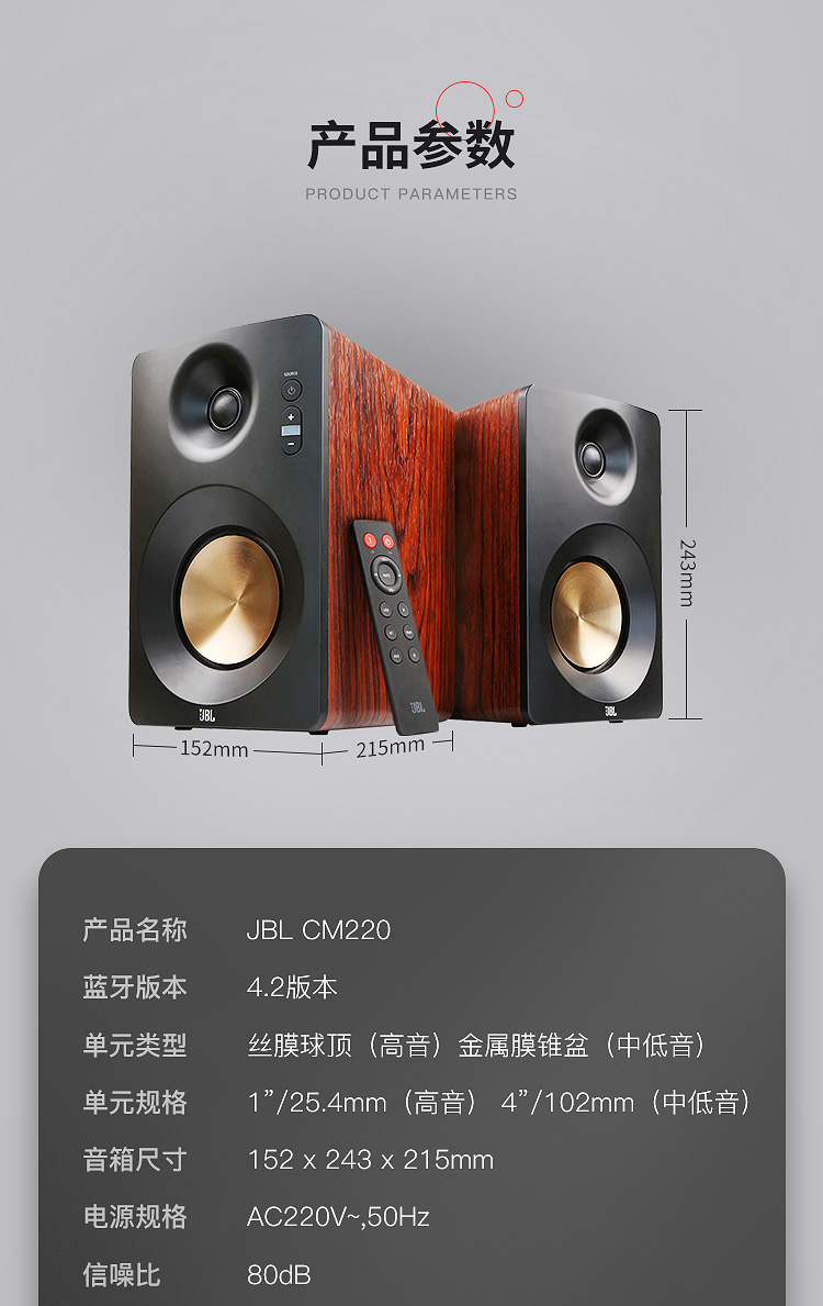 商品名称:JBL CM220 高保真有源监听2.0音箱 HIFI音质 蓝牙音箱 低音炮 多媒体电脑电视音响 室内桌面音箱