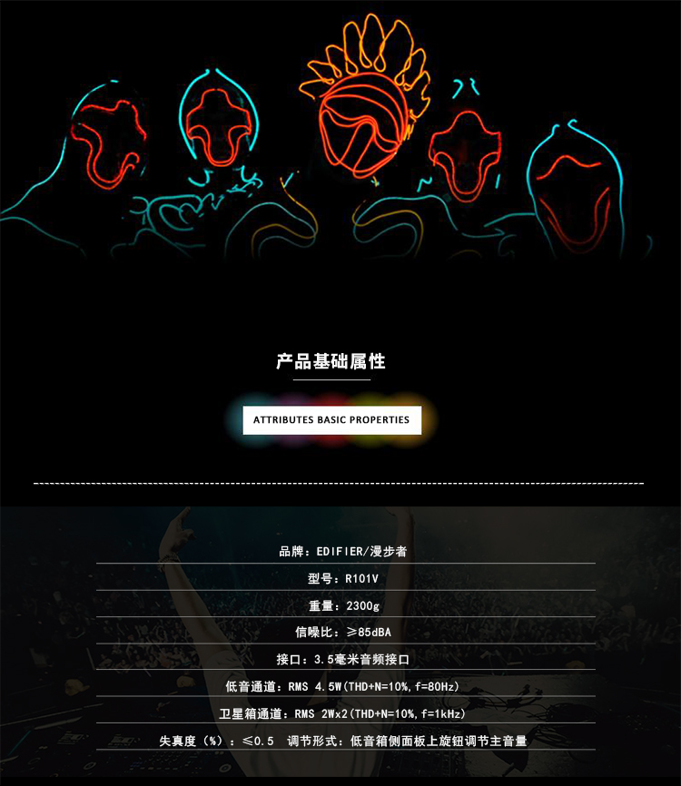 - 商品名称:漫步者(EDIFIER) R101V 2.1声道多媒体音箱 音响 电脑音箱 黑色
