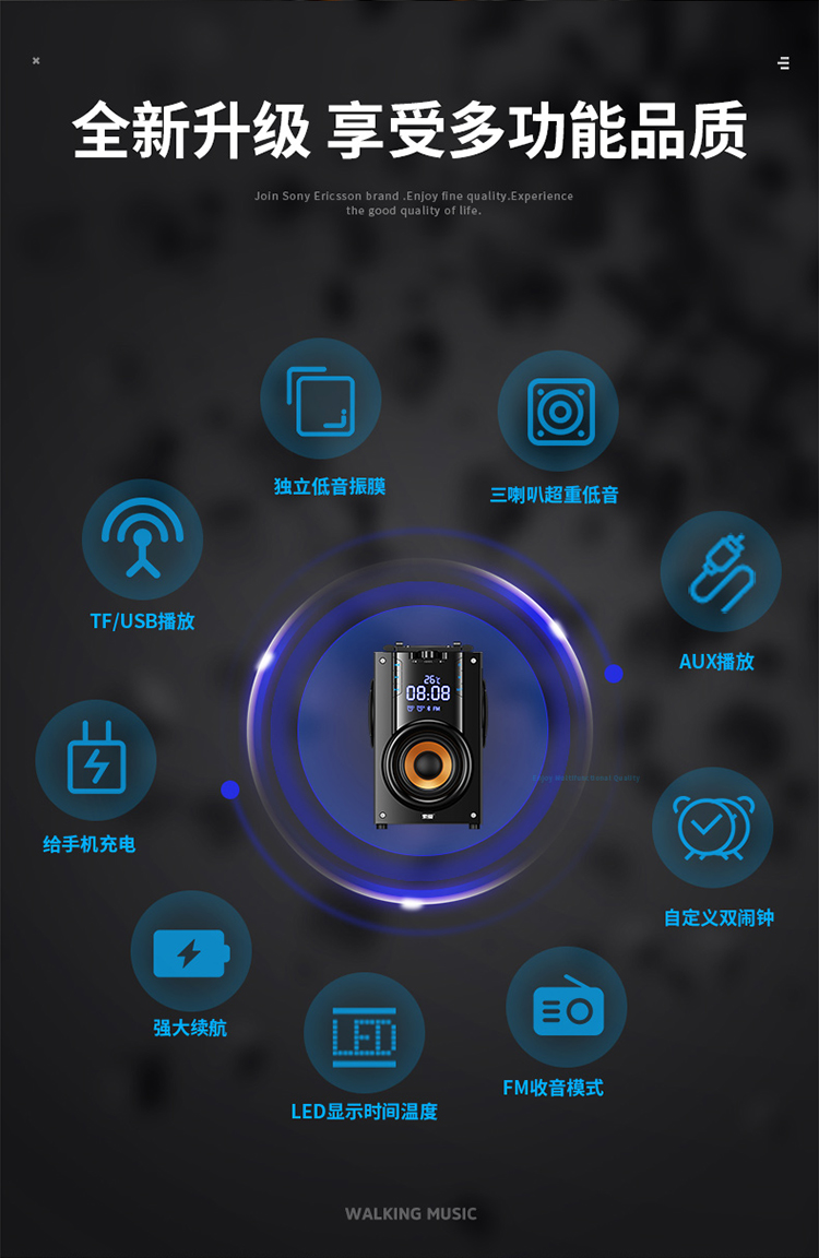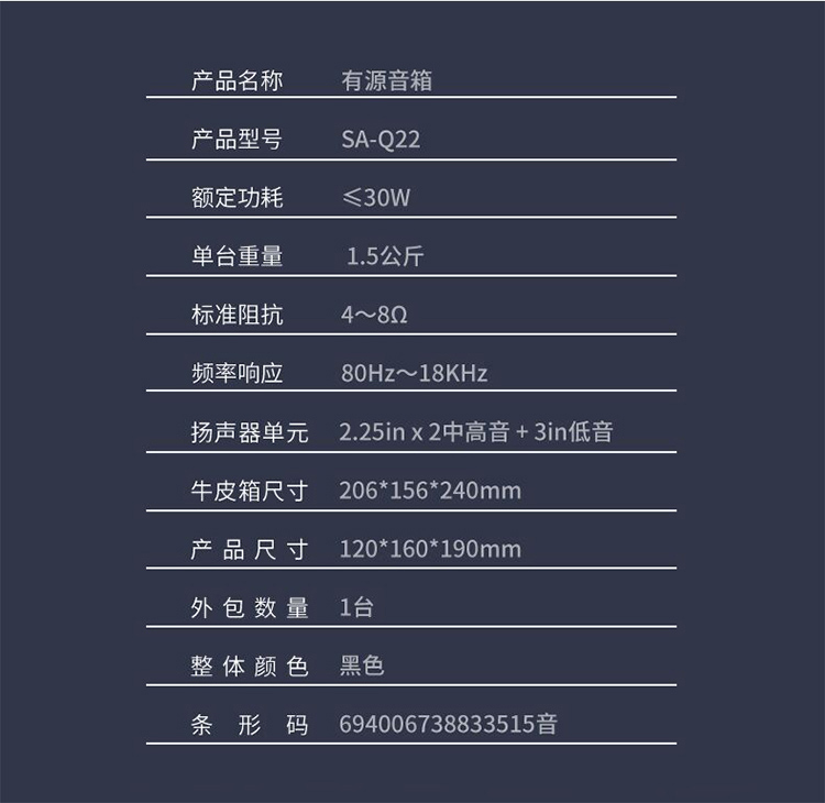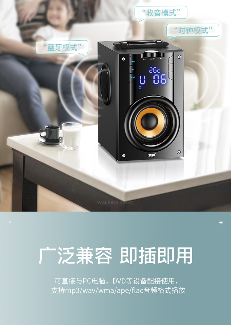 - 商品名称:索爱(soaiy) SA-Q22 无线蓝牙音箱户外大音量广场舞3d环绕音响小型家用地摊摆摊喇叭闹钟手提便携式