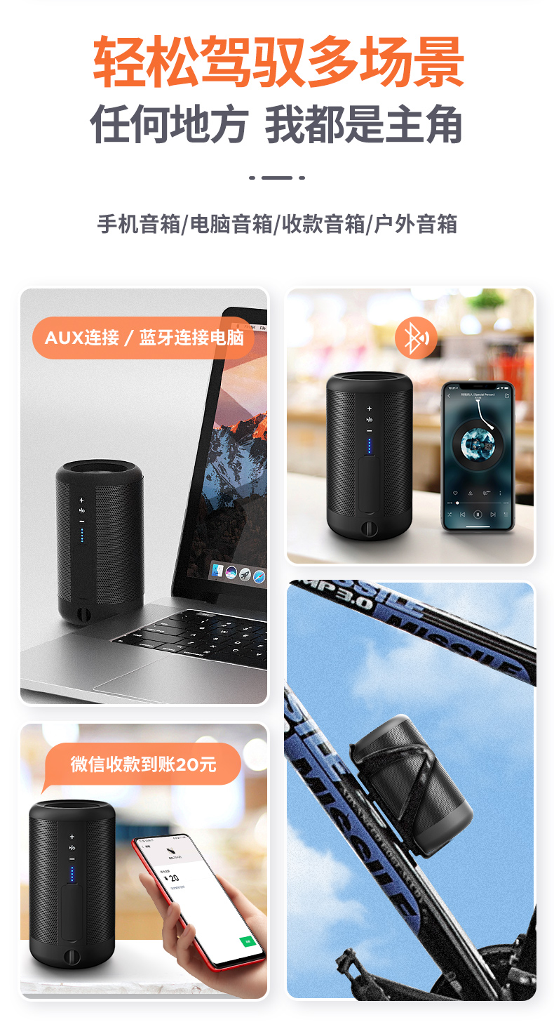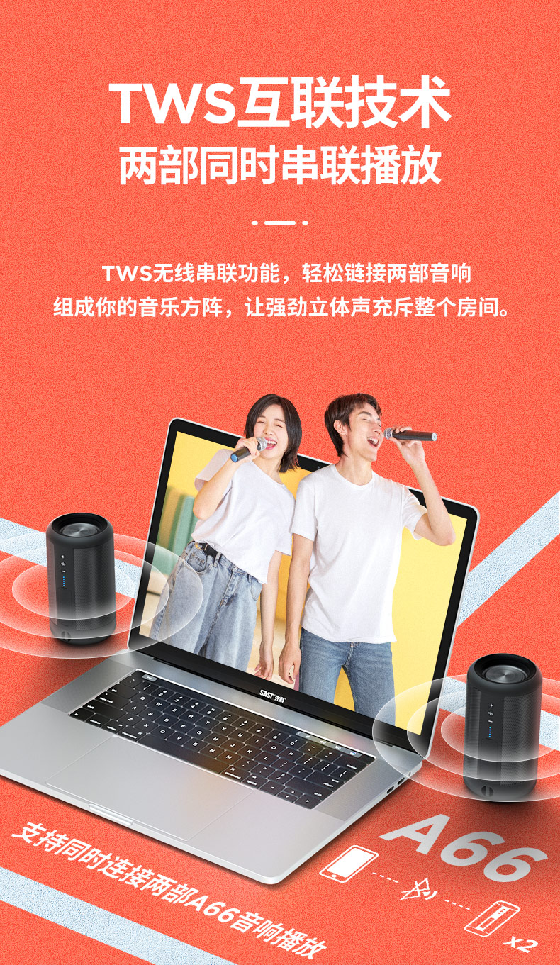 商品名称:先科(SAST)A66黑 蓝牙无线音箱迷你小音响便携式插卡手机电脑微信收款扩音器家用户外防水低音炮