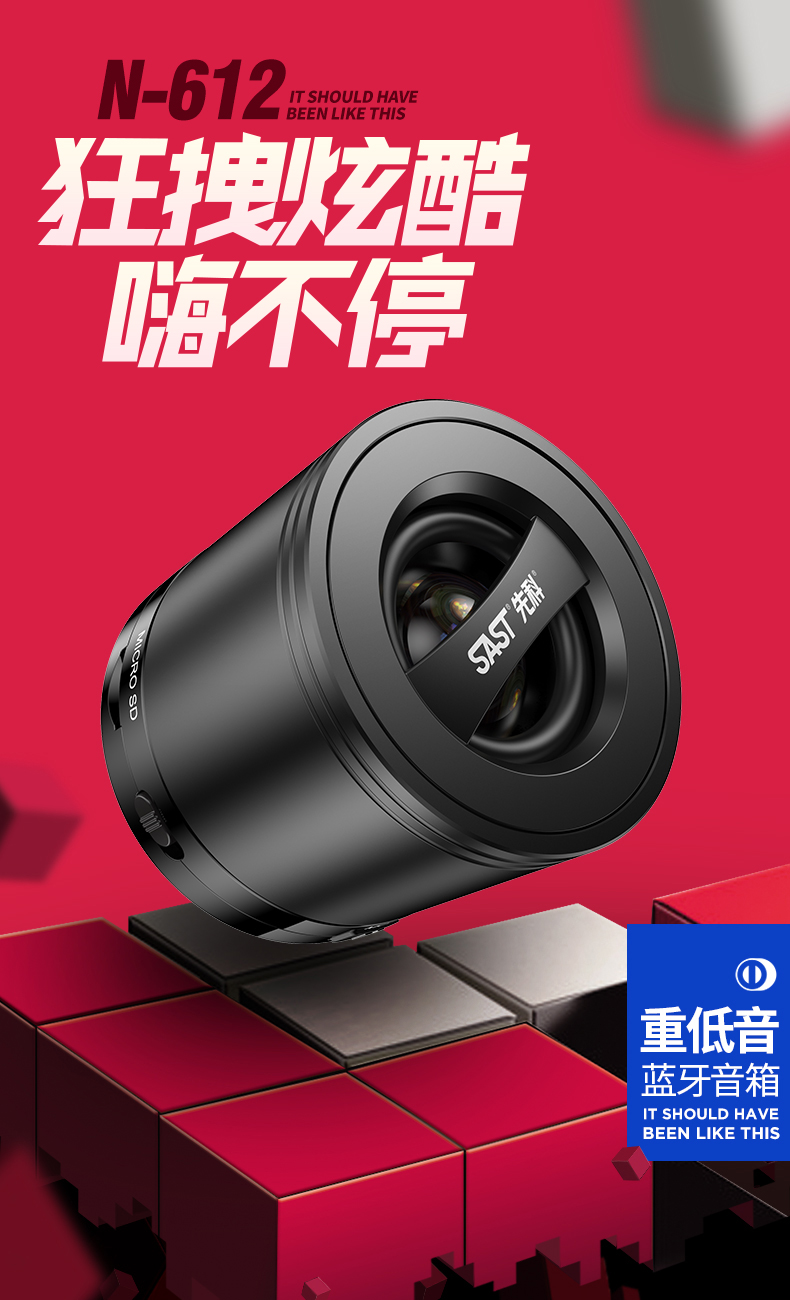 先科(SAST)N-612蓝 无线蓝牙音箱迷你音响便携式插卡手机电脑扩音器低音炮小音箱