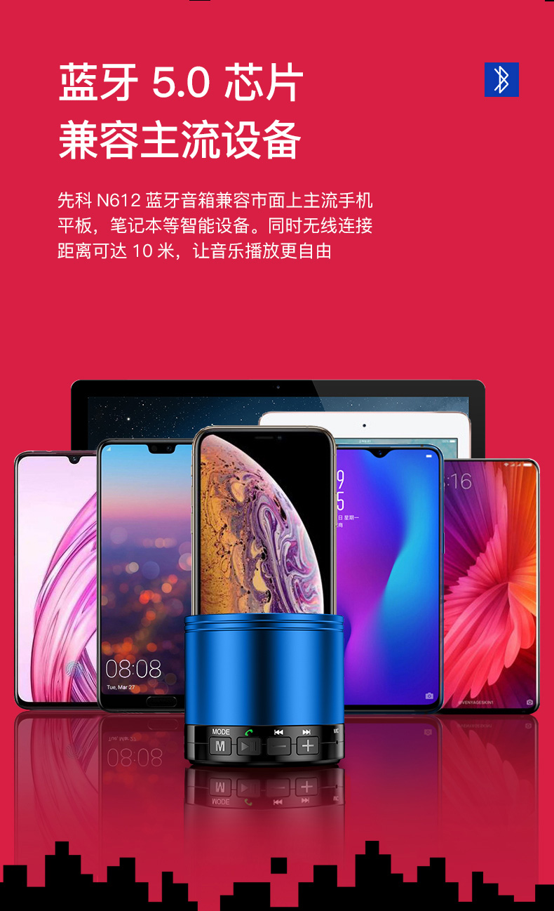 商品名称:先科(SAST)N-612蓝 无线蓝牙音箱迷你音响便携式插卡手机电脑扩音器低音炮小音箱