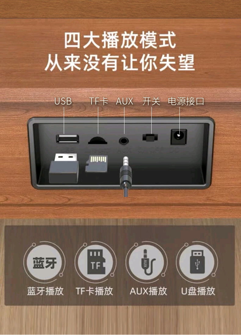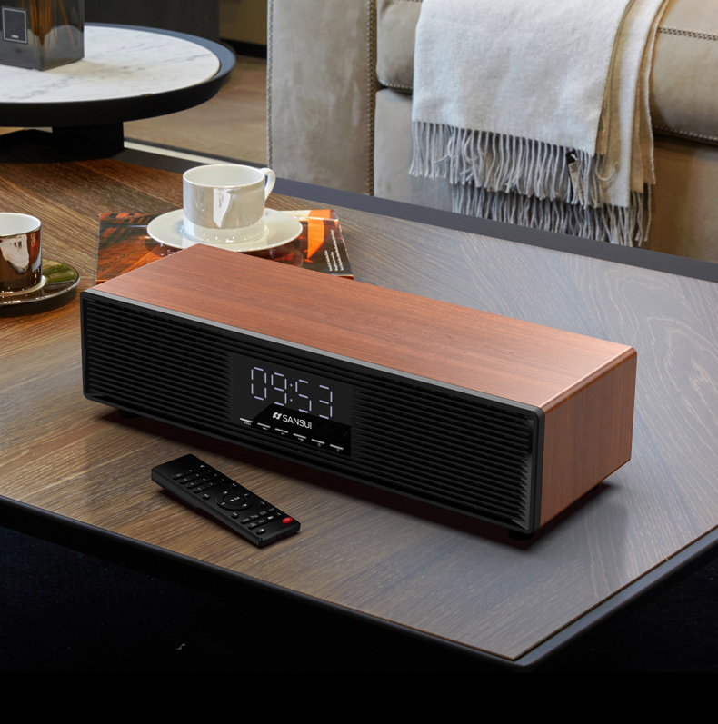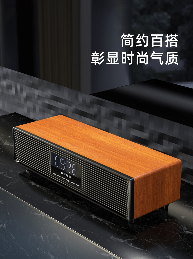 山水(SANSUI) P300无线蓝牙音箱大音量复古迷你小音响便携式小型重低音炮大功率家用播放器 木纹色-P300