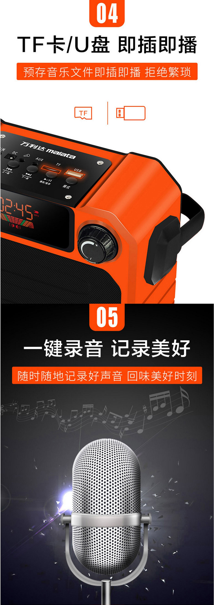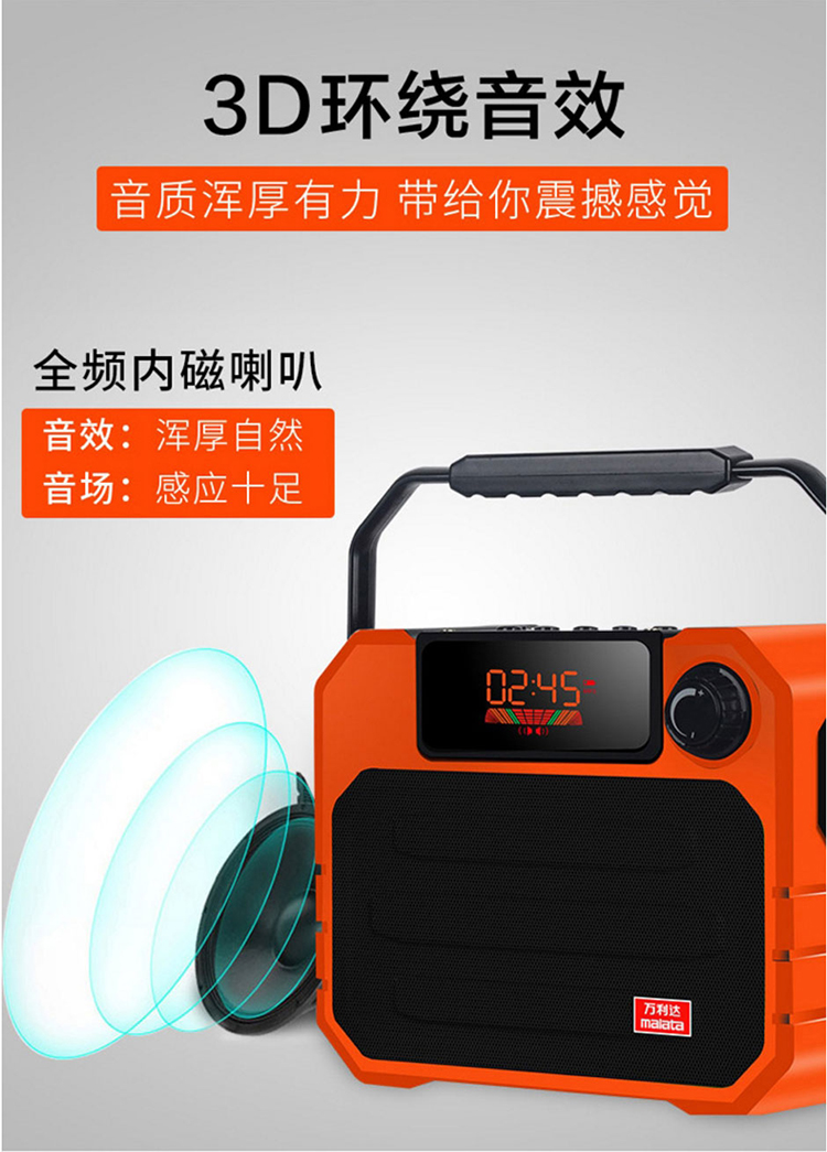 商品名称:万利达(Malata)X06户外手提便携式广场舞音响蓝牙音箱可插卡U盘 黑色