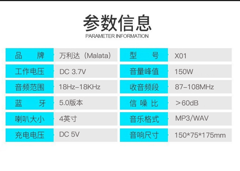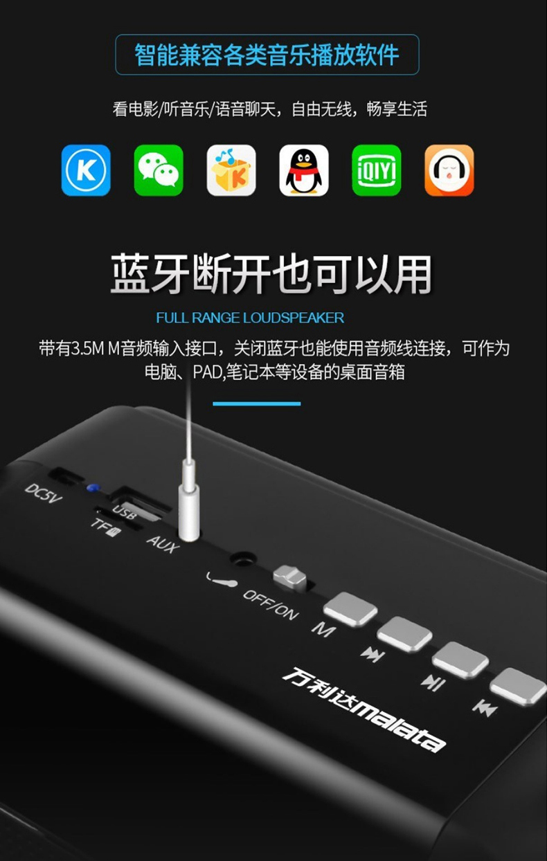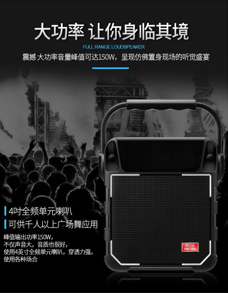 - 商品名称:万利达(Malata)音响蓝牙音箱户外手提便携式广场舞音响可插卡U盘 X01黑