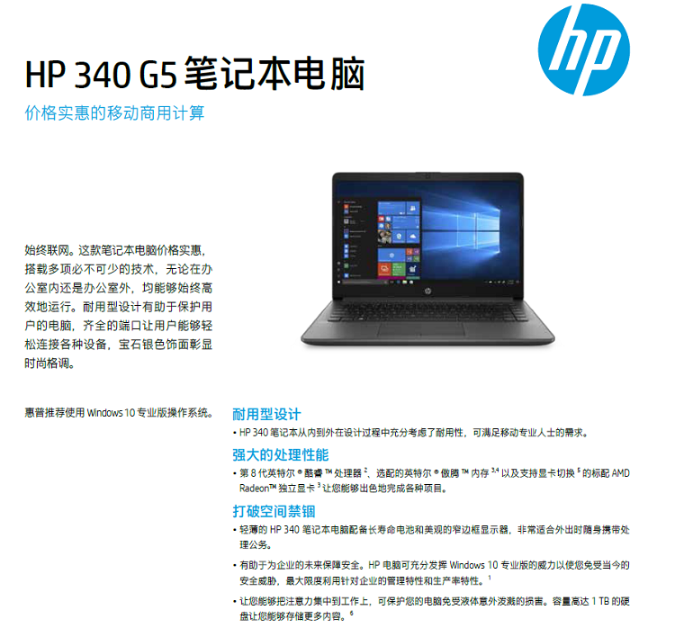 - 商品名称:HP 340 G5 i5-8265U/14" HD 防眩光屏/8G DDR4 2666MHz(1根)内存/256G PCIe NVMe/DDR5 2G显存/指纹识别720P 高清摄像头/802.11AC 2x2 wifi(RT)+蓝牙/3芯 41whr长寿